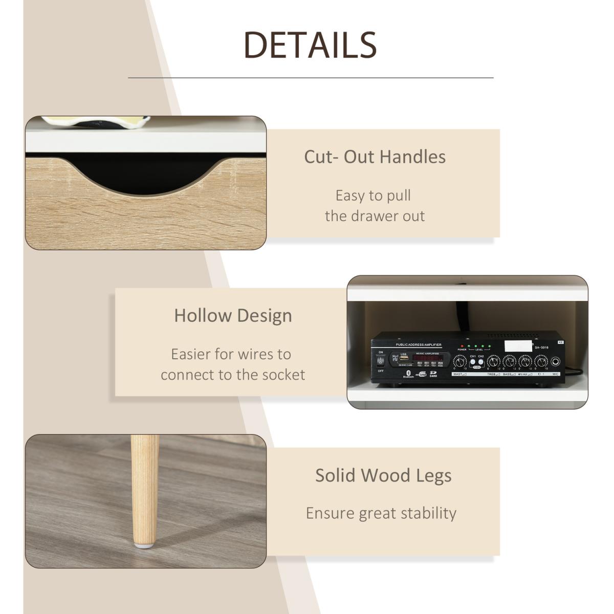 TV Stand Unit for TVs up to 42'' Flat Screen with Drawers - White and oak