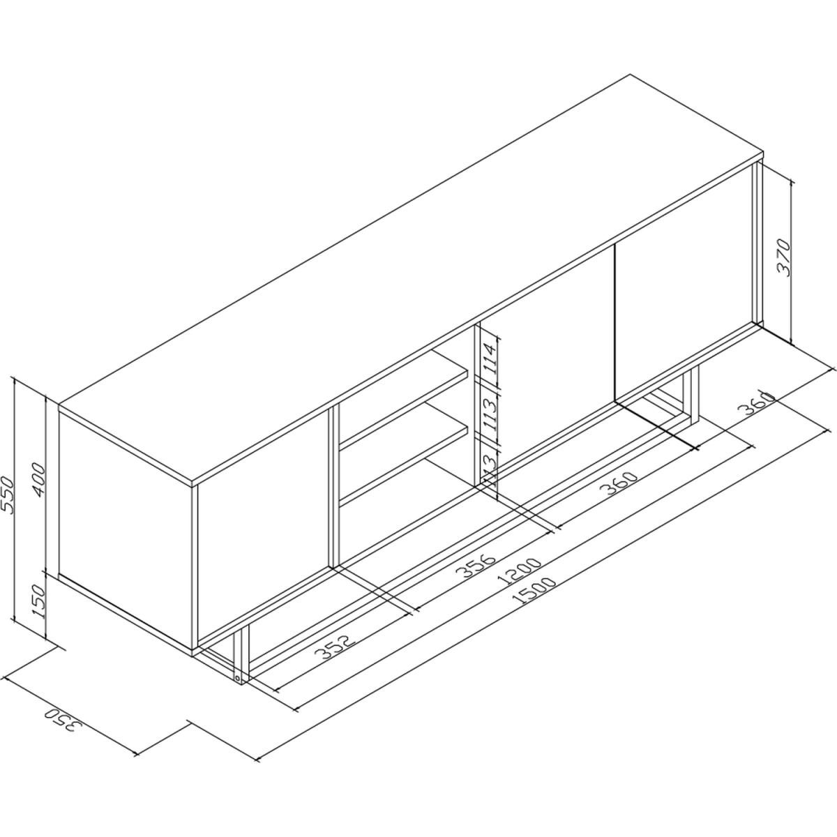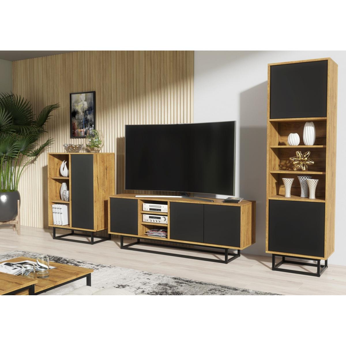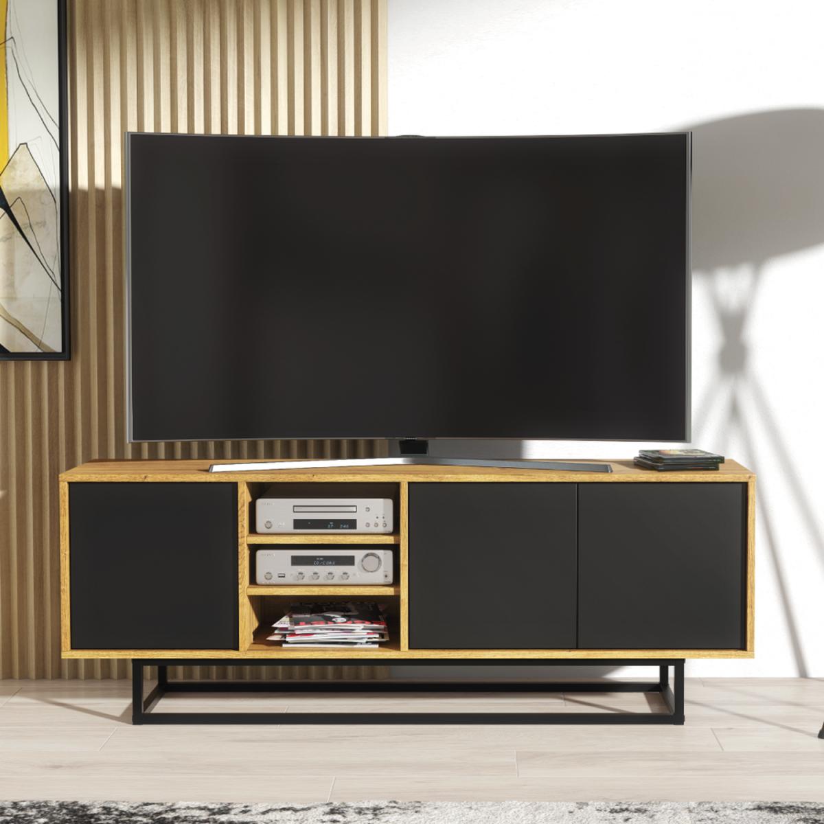 TV Unit 150cm - Oak Black - Colour: Oak Body & Black Matt Doors