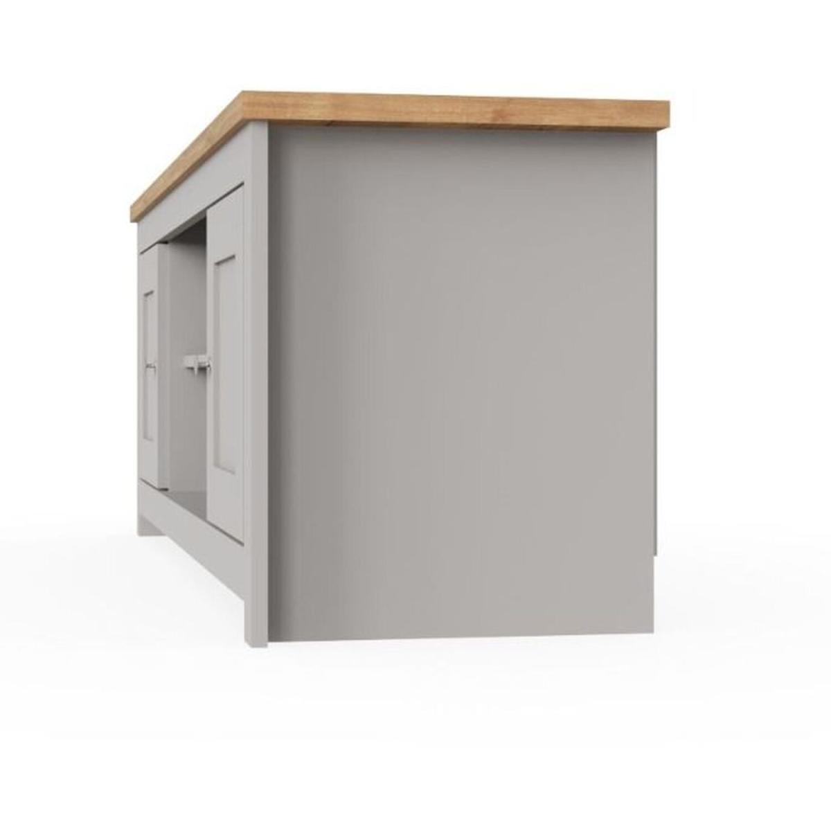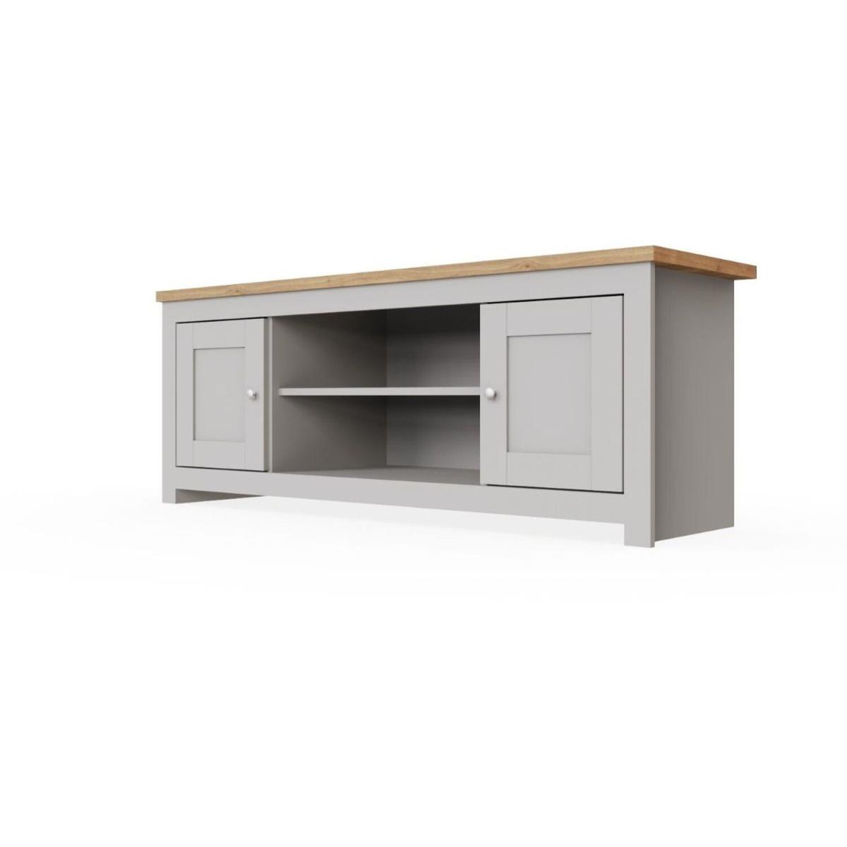 I love this grey TV unit for its versatile and timeless design, making it a great anchor piece for both modern and traditional interiors. It works particularly well in country cottages or coastal schemes where muted tones and natural textures are key. Styling suggestions include layering with decorative objects like vases or books on top, while utilising the internal storage for keeping wires and media accessories out of sight. Its neutral colour makes it easy to pair with colourful artwork or soft textiles, creating a balanced and welcoming focal point in the living room.