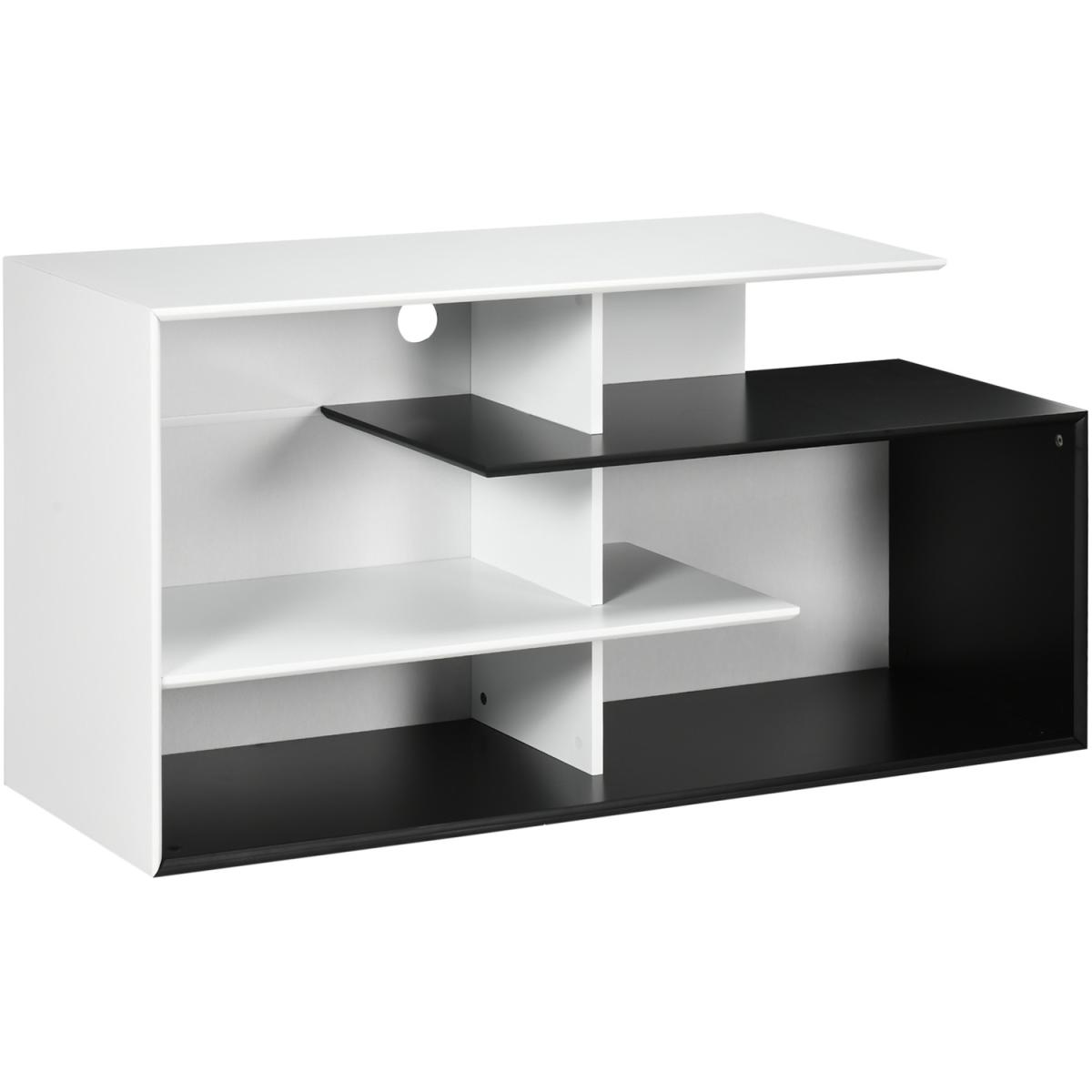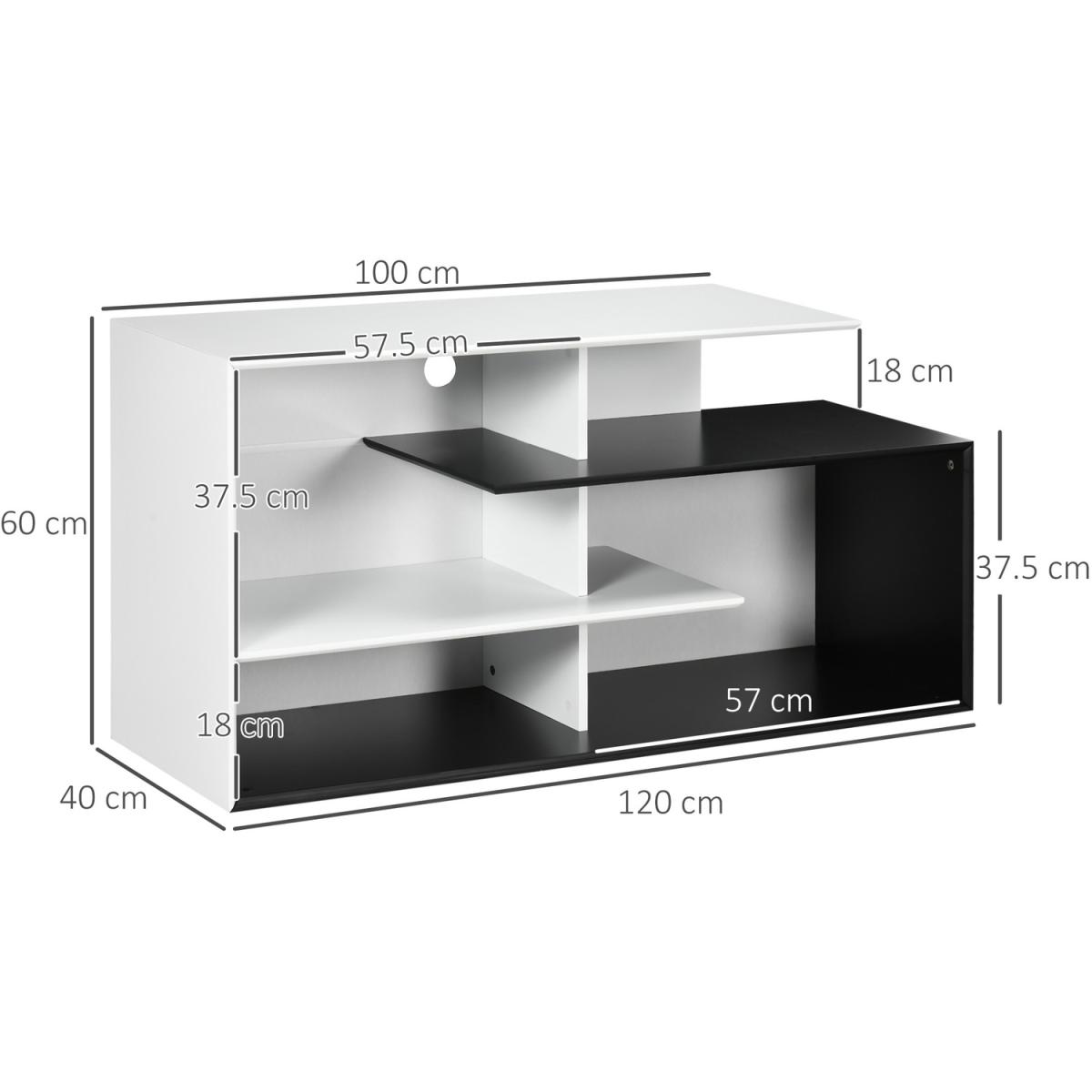 Upgrade your living room with this HOMCOM TV stand media console. More than just holding your TV, it features three shelves for plenty of storage and display space - think movies, video games and books you love to read. Cable hole on back to gather and organising wires together, without the mess. A companion for every relaxing moment.