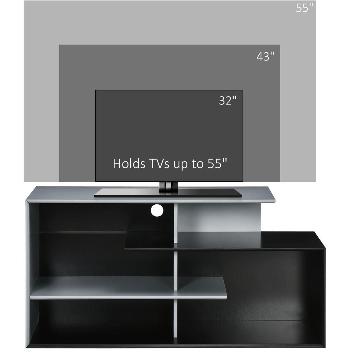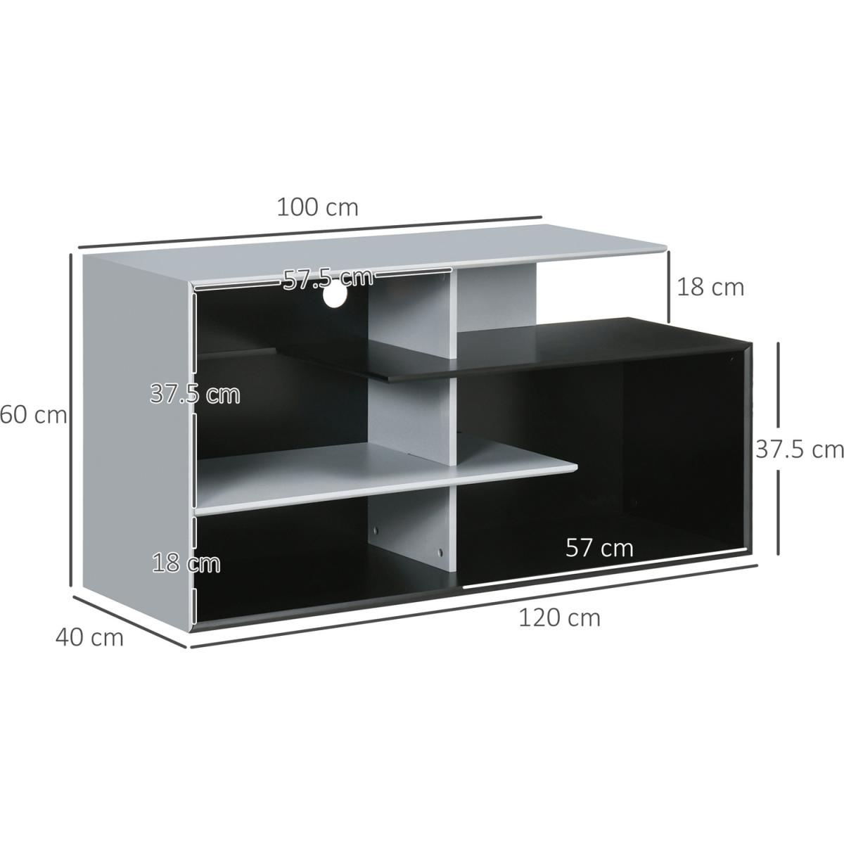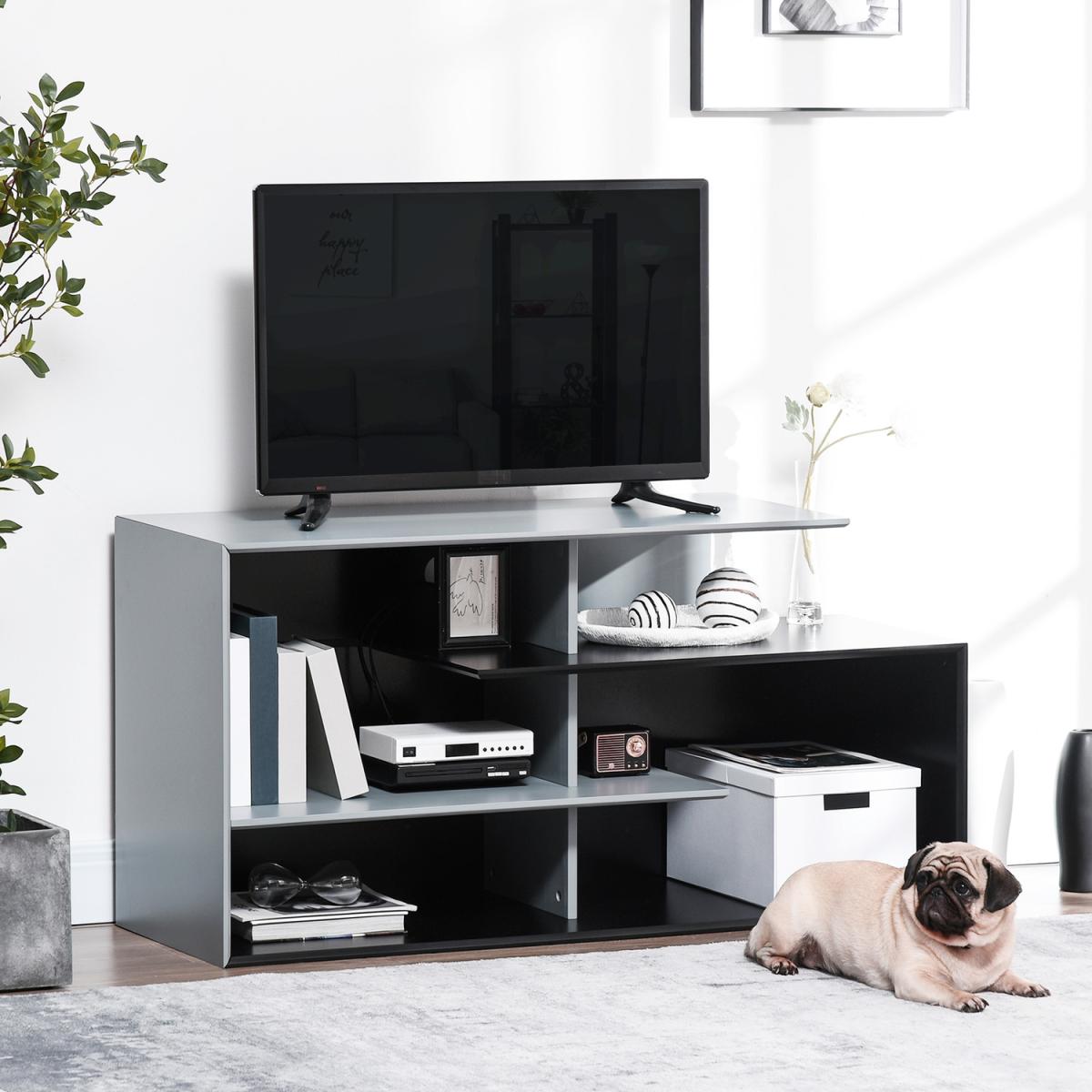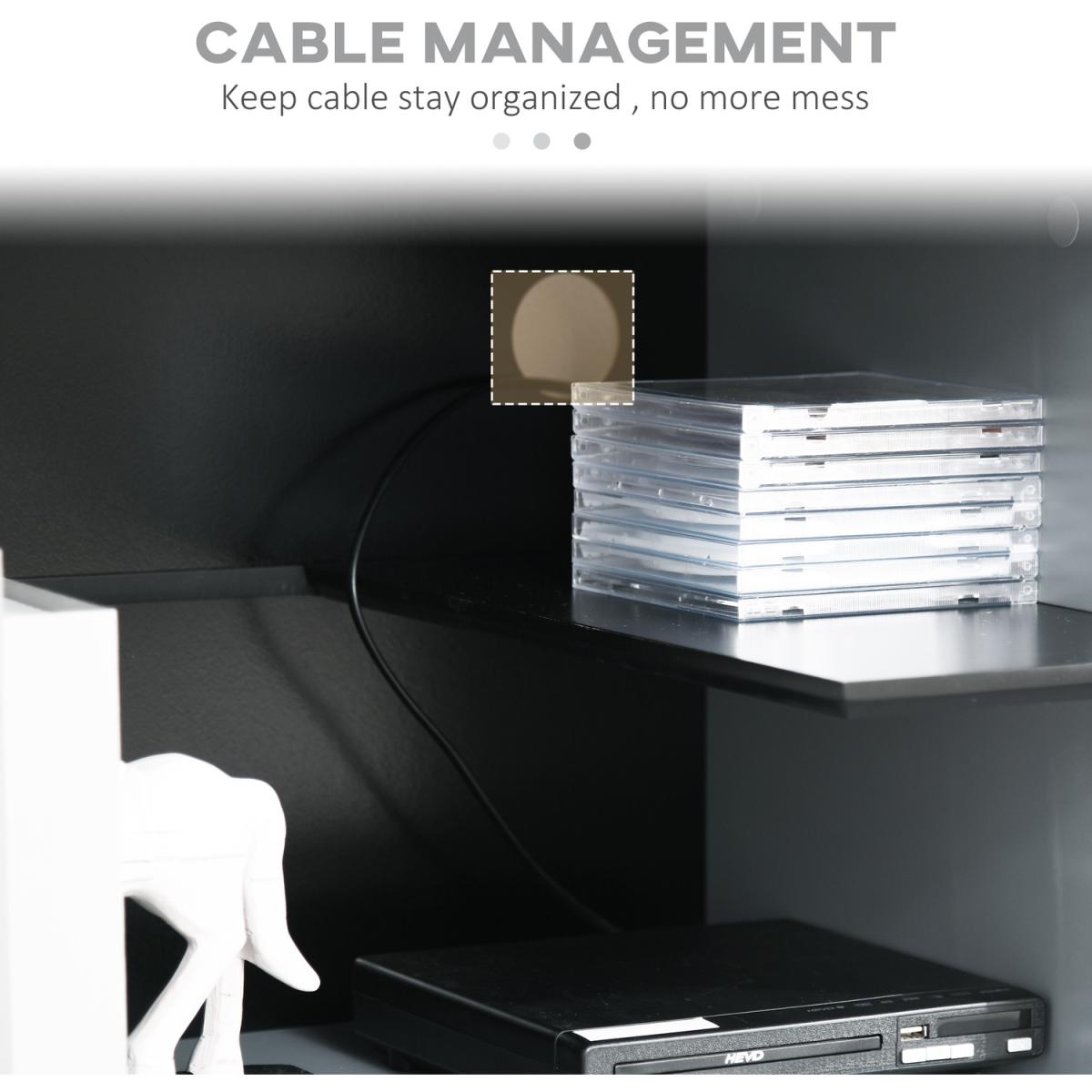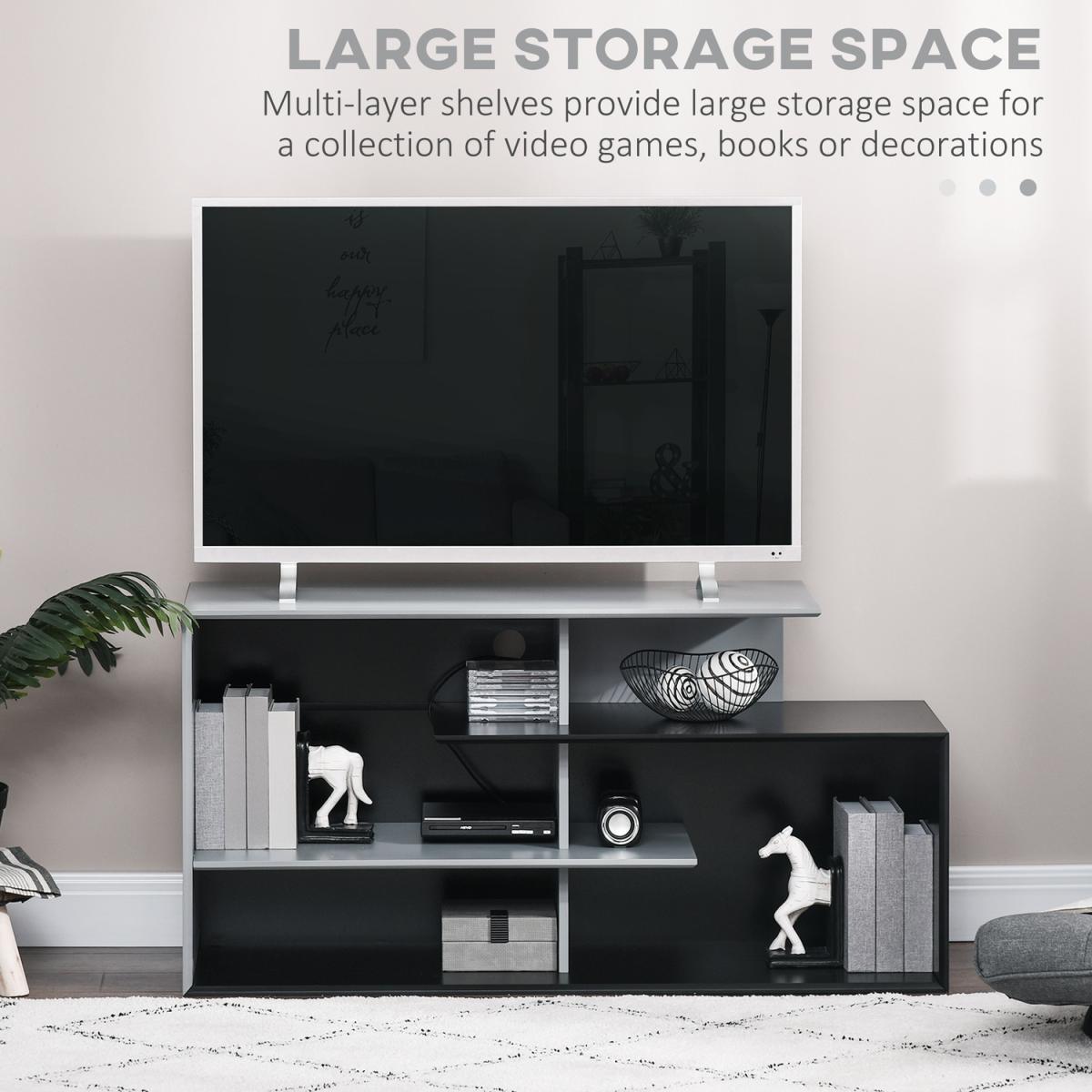 Upgrade your living room with this HOMCOM TV stand media console. More than just holding your TV, it features three shelves for plenty of storage and display space - think movies, video games and books you love to read. Cable hole on back to gather and organising wires together, without the mess. A companion for every relaxing moment.