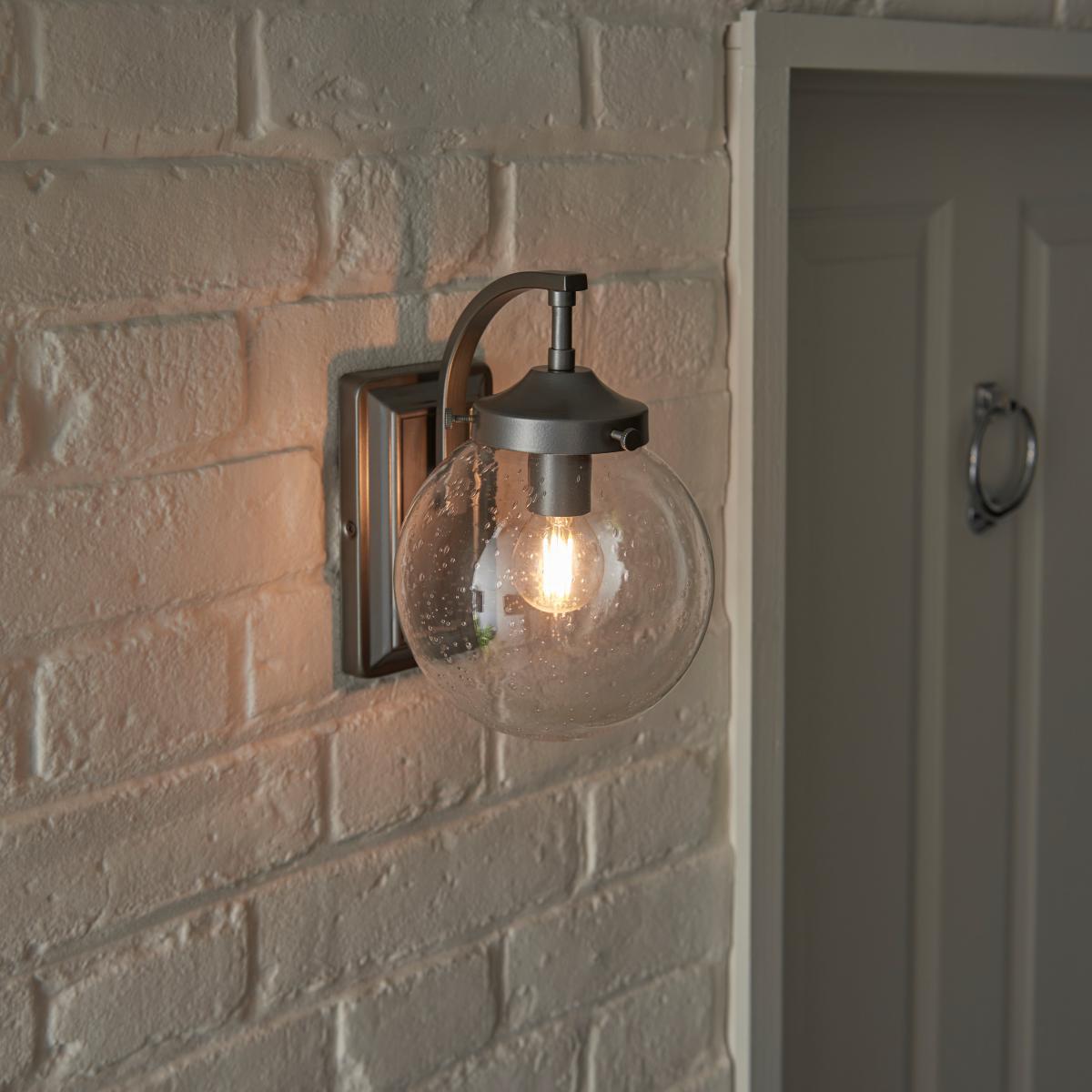 This outdoor wall light is a stylish choice that blends classic artisan appeal with modern simplicity. I love its clear globe glass, which allows the filament bulb to become a feature, adding a warm, inviting glow to exterior spaces. It works particularly well in industrial or contemporary gardens, as well as pairing nicely with rustic or vintage-style facades. For practical styling tips, consider installing it alongside other metal or glass fixtures to create a cohesive look, and position it at eye level for the best effect. Remember to choose energy-efficient bulbs to enhance its sustainability and ensure it provides ample illumination for entrances, pathways, or patios.