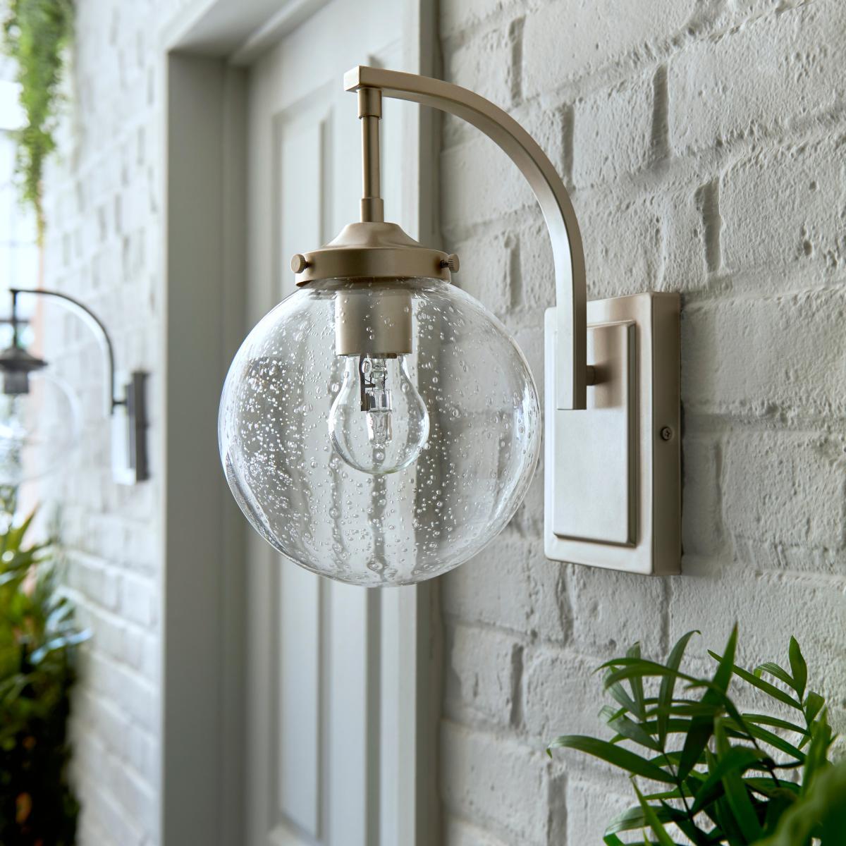 I love this outdoor wall light because of its contemporary yet timeless design, especially the clear glass globe that adds a subtle touch of elegance while providing ample illumination. It works particularly well in rustic or modern exteriors, balancing sandblasted brickwork or sleek facades effortlessly. When styling, consider pairing it with greenery or natural textures to soften its look, and position it at a height that highlights its globe shape without overpowering the space. Practical tips include using warm LED bulbs inside to create a welcoming glow and ensuring the fixture’s weatherproof features are maintained for durability. It’s an excellent choice for creating inviting outdoor atmospheres or framing doorways with a stylish touch.