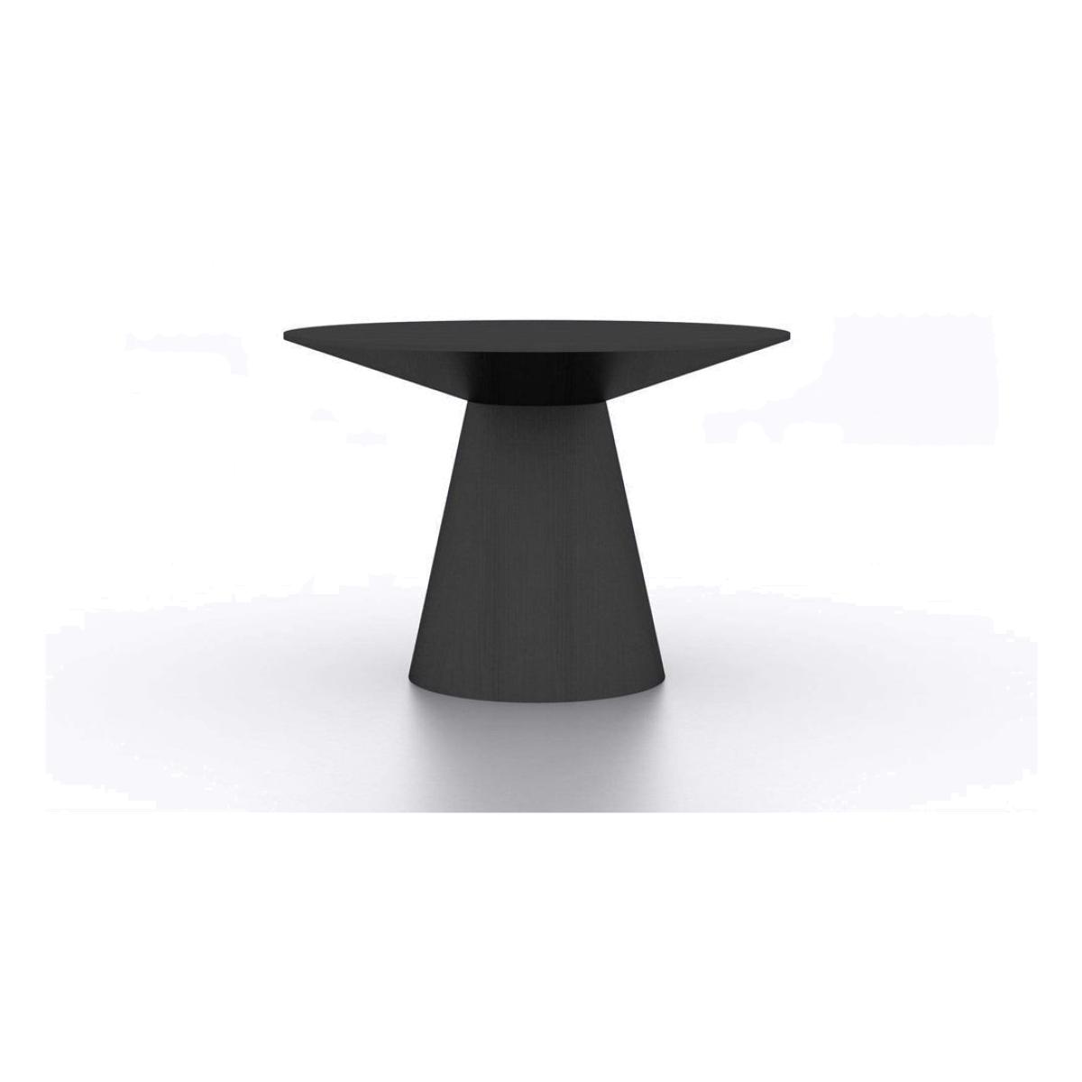 Update your dining area with the effortless style of the Twenty10 Designs Lotus Wenge Dining Table. The table's conical base meets the round tabletop with an eye-catching sweep, as the suave black veneer surface pans out into an ample space for entertaining. The timeless design of this piece ensures that it will marry just as well with a wide range of styles as it would with matching items, allowing true versatility when choosing your dining chairs. Measuring 75cm in depth and 110cm in diameter, this dining table is well proportioned to cater for all your mealtimes as well as entertaining your guests in style. Dimensions: D: 75 x Dia: 110 cm