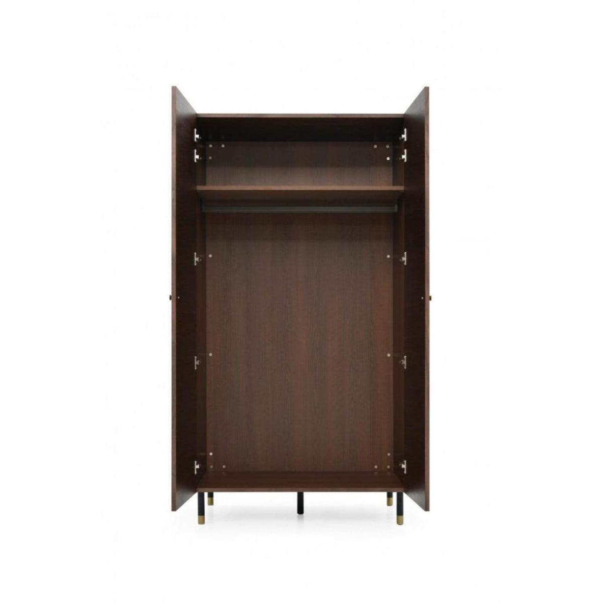 Your outfits will look great in the Twenty10 Designs Willow wardrobe, as this sleek two-door wardrobe commands attention. Finished in chocolate brown, it features a minimalist rich veneer with stylish detailing to the handles and feet. This modern piece has a useful storage area above the clothing rail, meaning you won't have to choose between style and substance - at least as far as your furniture is concerned. The dimensions of the Twenty10 Designs Willow wardrobe are 100cm high, 190cm wide and 60.8cm deep, meaning it will be a spacious and chic addition to any home and especially those with contemporary styling. Dimensions: H:100 x W:60.8 x D:190 cm