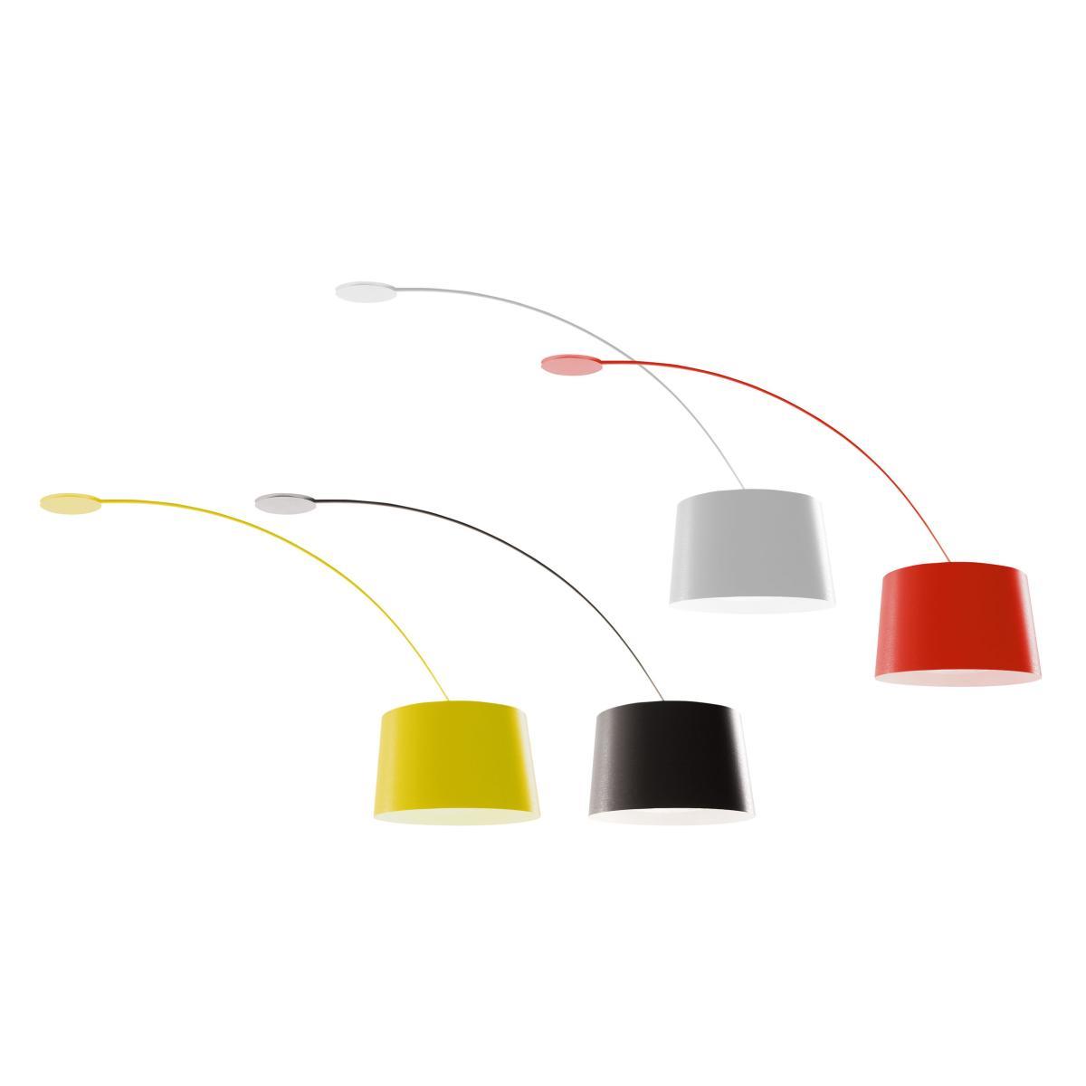 Ample, linear, essential design combined with strong flexibility characterise the formal elegance and light sophistication of Twiggy. Twiggy's extraordinarily resistant and flexible material makes it possible to create a lamp with impresive overall dimensions whilst maintaining an extremely streamlined silhouette that harmonises its visual impact. The ceiling model is the maximum expression of flexibility: by rotating 330° it is an optimal solution for decentralising a light source. Compound material floor lamp on lacquered glass fibre base, available in four chromatic finishes.