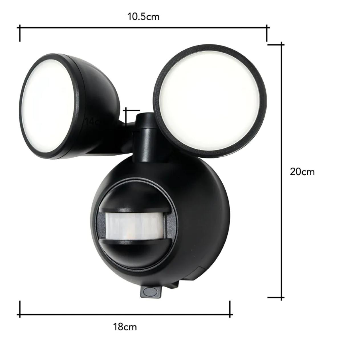 Illuminate your outdoor spaces with the Twin Battery Operated LED Outdoor Flood Light with PIR Sensor. Made from durable polycarbonate in a sleek black finish, this floodlight brings both style and functionality to your home exterior. The built-in PIR motion sensor ensures efficient energy use, activating the light when motion is detected. With a detection range of 180 degrees and a distance of 10 meters, it provides reliable security and convenience. The integrated LED bulb emits a bright light, making it ideal for pathways, entrances, and gardens. Easy to install, this battery-operated floodlight offers flexibility without compromising on performance. Illuminate your surroundings with BHS, providing lighting solutions designed for your lifestyle.