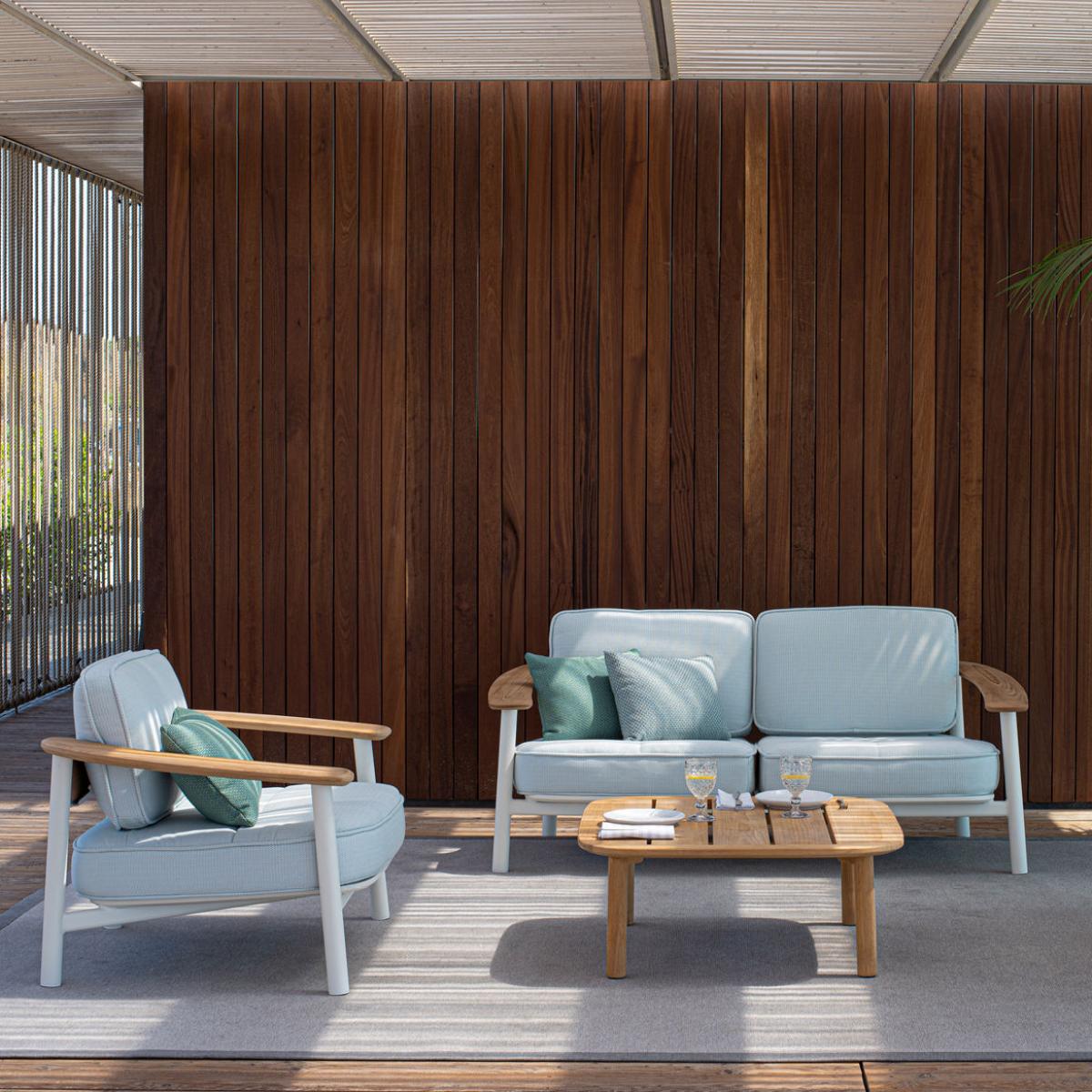 German designer Sebastian Herkner has created a collection of elegant, versatile outdoor furniture for Emu, adapting to many different settings. The harmony of shapes and materials, clean lines and functionality are the main characteristics of Shine. The Twins collection offers an ultra-chic combination of coloured aluminium and FSC-certified natural teak. Twins furniture is ultra-robust: it's weather- and UV-resistant. Twins outdoor sofas and armchairs let you create a cosy, comfortable outdoor living room. With more than fifty years’ experience in metalworking, Emu expresses its style in gardens and on terraces all around the world. Emu creations have become icons in the world of "made in Italy" design and quality. Emu carries out and controls all the production stages within its factory in Marsciano, in the heart of Umbria. All phases of the production process are subject to rigorous monitoring. Particular work on the padding of the generous cushions provides not just physical but also visual comfort.