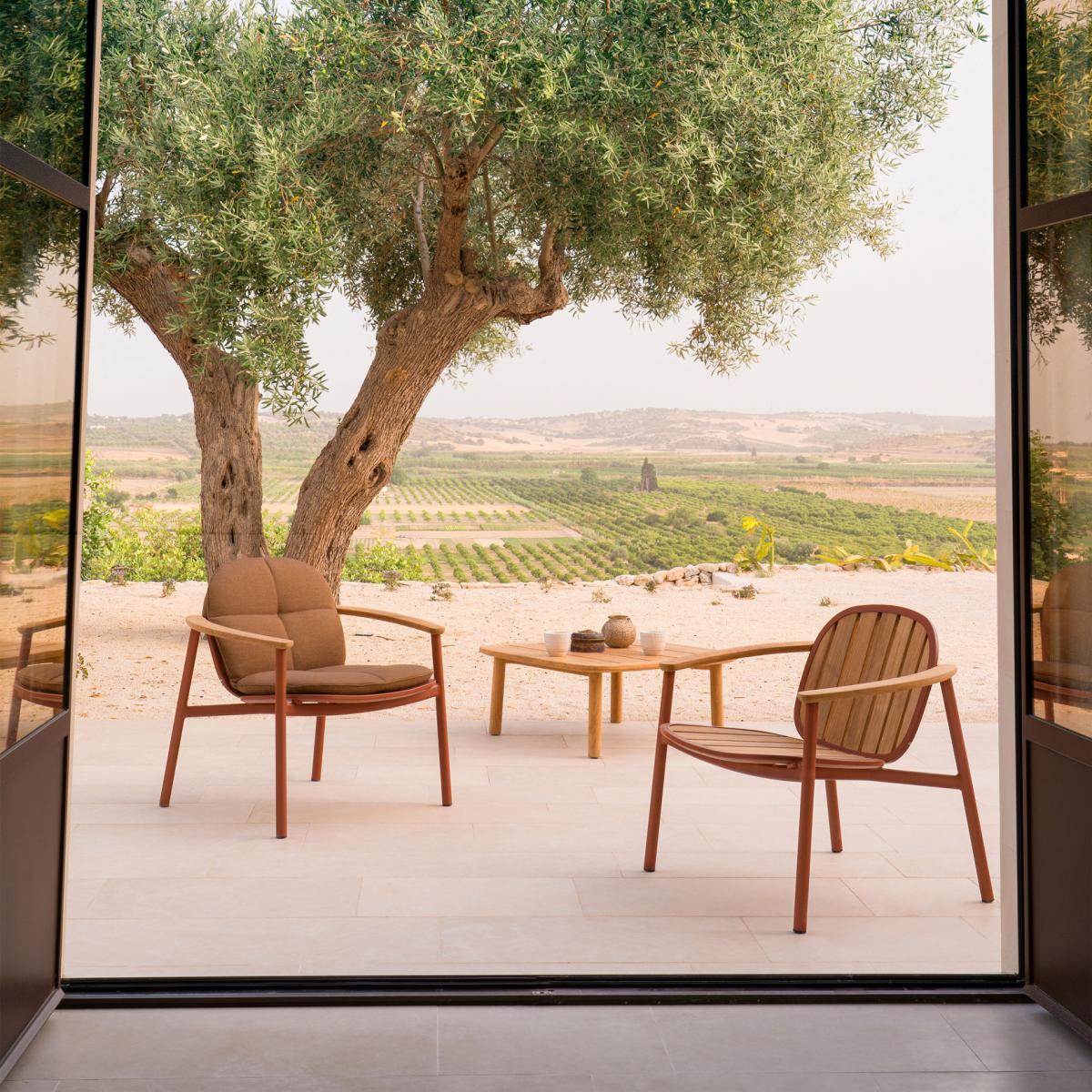 German designer Sebastian Herkner has created a collection of elegant, versatile outdoor furniture for Emu, adapting to many different settings. The harmony of shapes and materials, clean lines and functionality are the main characteristics of Shine. The Twins collection offers an ultra-chic combination of coloured aluminium and FSC-certified natural teak. Twins furniture is ultra-robust: it's weather- and UV-resistant. Maintenance: in the absence of maintenance treatment by periodic application of common and specific oil-based protective products, the surface will take on a silver-grey patina which can be removed by light sanding of the surface followed by subsequent polishing with burlap. With more than fifty years’ experience in metalworking, Emu expresses its style in gardens and on terraces all around the world. Emu creations have become icons in the world of "made in Italy" design and quality. Emu carries out and controls all the production stages within its factory in Marsciano, in the heart of Umbria. All phases of the production process are subject to rigorous checks.
