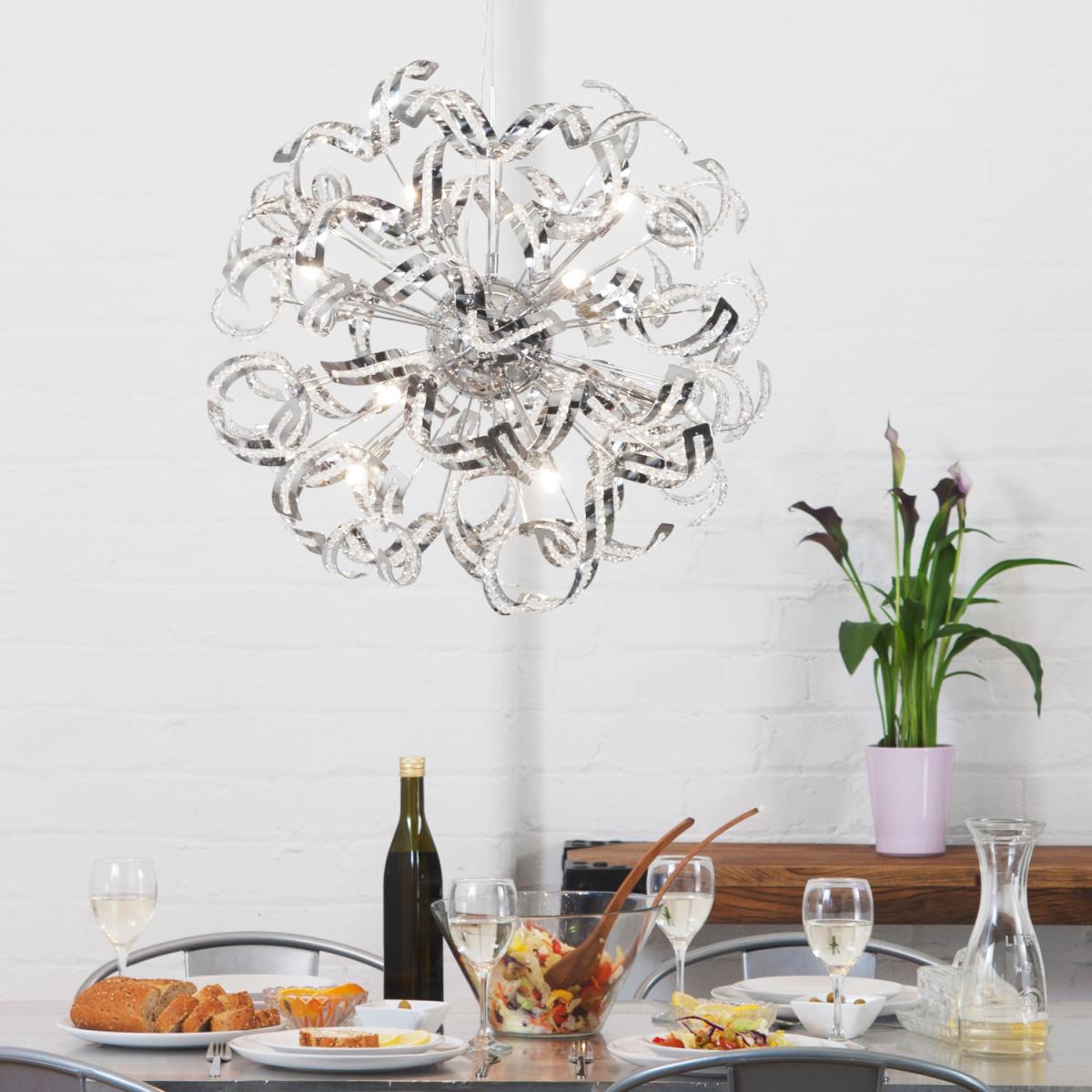 The Twirl Ceiling Pendant is a stunning symphony of style and illumination. Designed with elegance in mind, this pendant features a beautifully curved chrome frame adorned with graceful arms, each arm holding covered in a crystal effect beading that glimmers and shines. The modern, abstract design and adjustable height make it a versatile addition to any space, while the lights provide ample illumination to brighten up your room. No matter where you are styling, the Twirl pendant is the perfect centrepiece that adds sophistication, charm, and opulence.