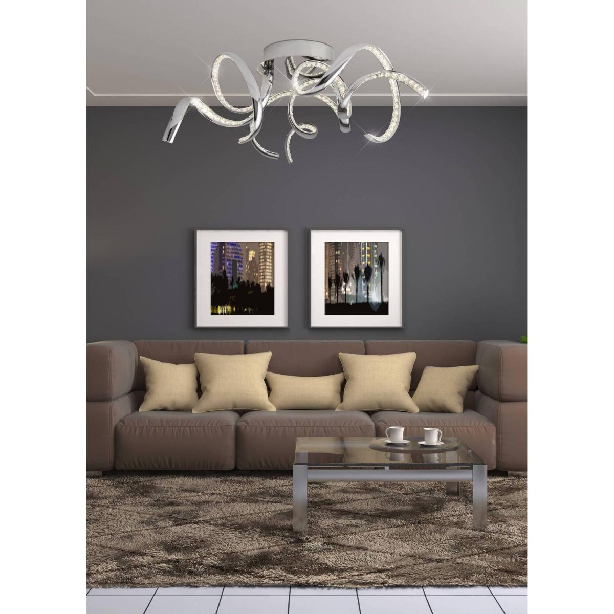 This unique twirl arm detail ceiling flush includes chrome and clear crystal, making it an eye catching addition fit for any stylish home. A warm white light is emitted and will add brightness. LEDs use up to 85 less energy and last up to 20 times longer than incandescent bulbs. The range offers matching fittings for a lighting theme which will transform the room.