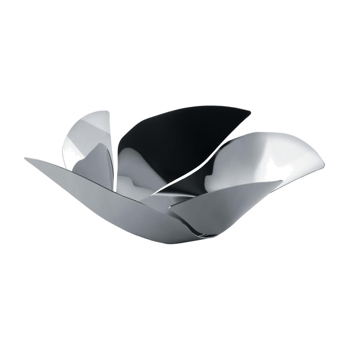 "Designed by French architect Odile Decq ""Twist Again"" is a stylish fruit basket with an attractive pinwheel-like shape. A dance around the fruits, the skirt is flying all over, and the fruits remain in. The designer's angular serving tray plays on tradition with a planar twist from corner to corner that appears to originate at varying perspectives. Twist Again is available in black or mirror-polished stainless steel (shown). Alessi's Twist Again is made by Alessi in Italy. Simple, stylish and functional. ".