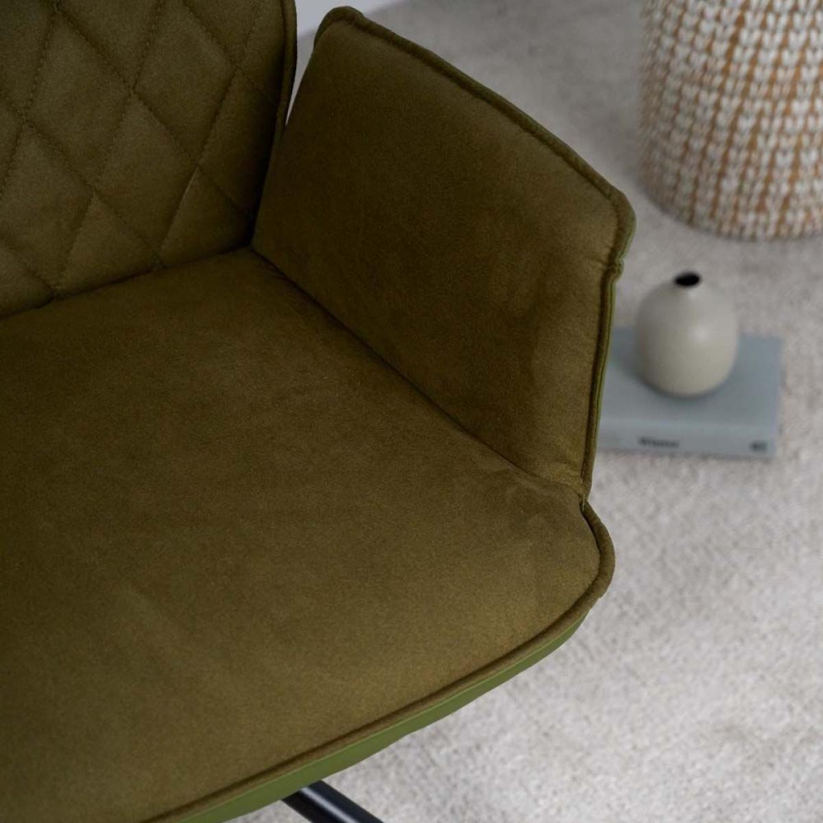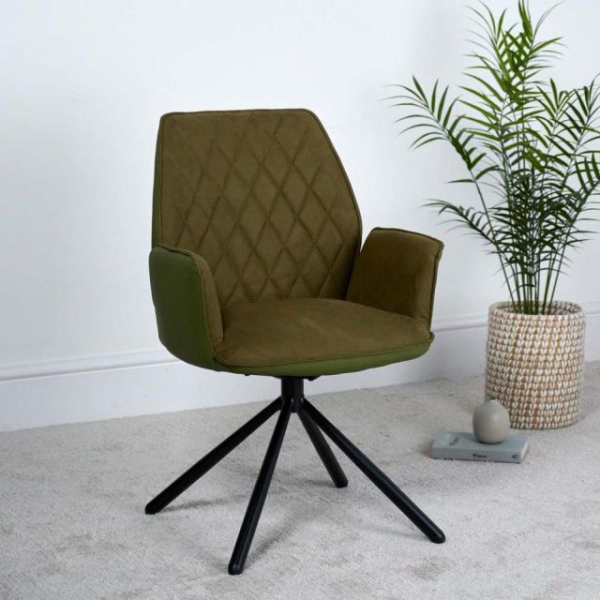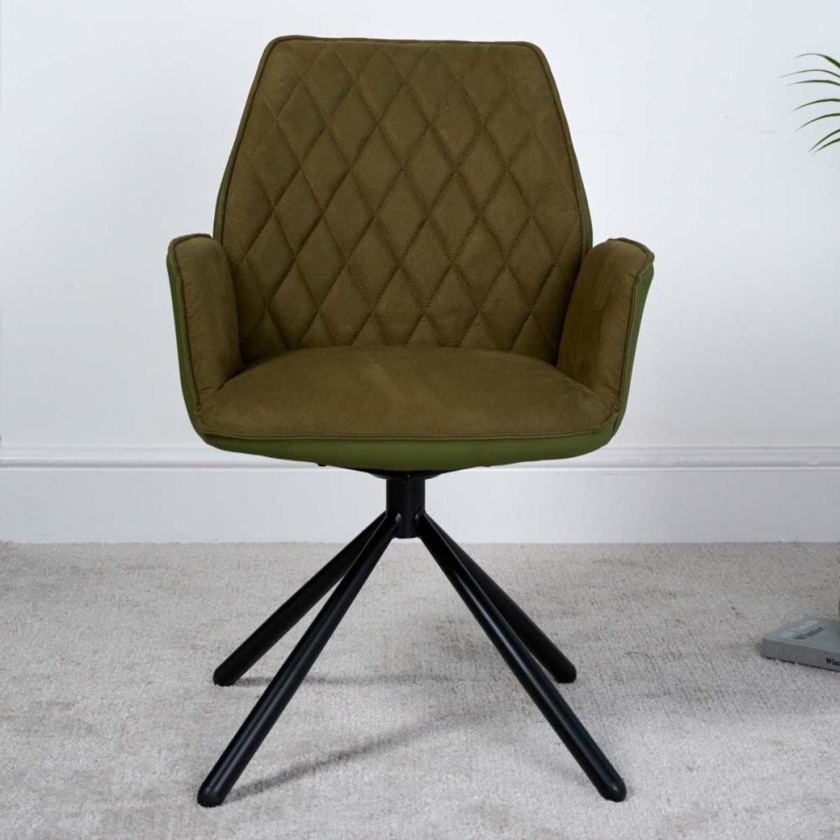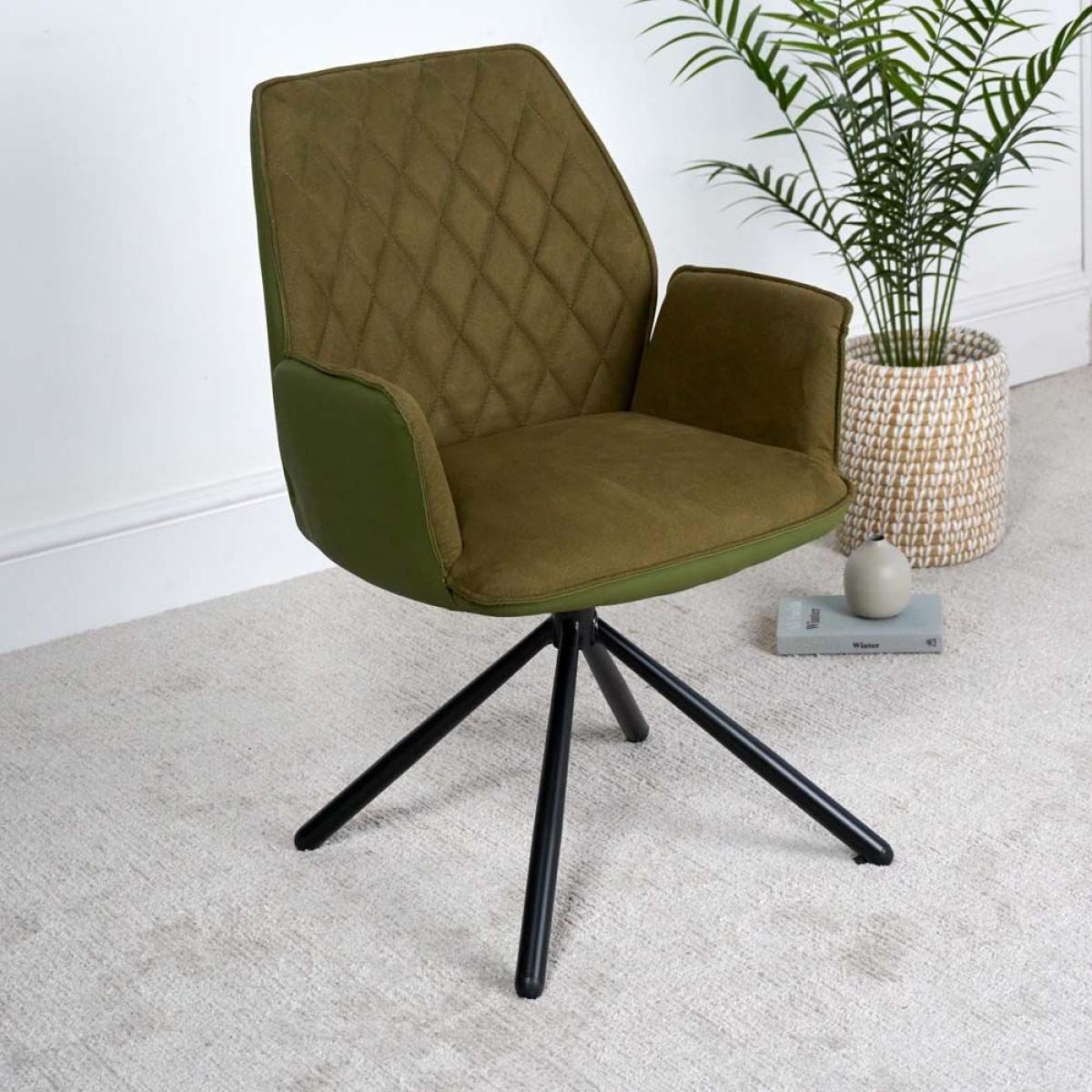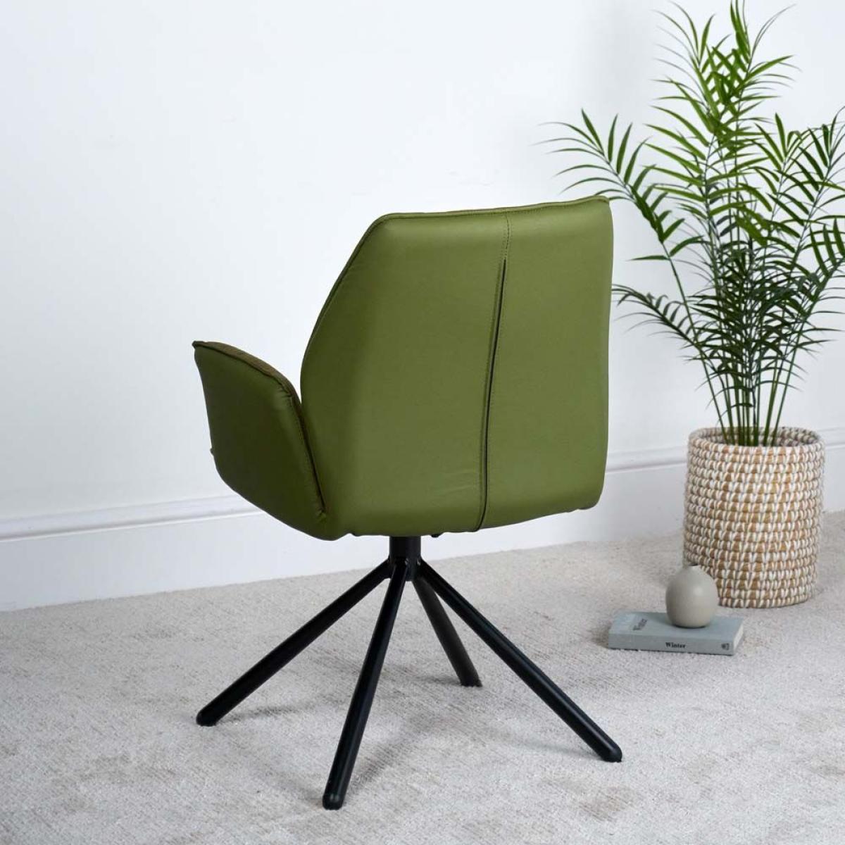 The Twist dining chair is a very comfortable chair with arms at a perfect height for support. It features a smooth faux suede interior and a matt deep green faux leather exterior. The chair also has a great swivel that springs back to the centre position to keep things tidy. Also available in six alternative colours.