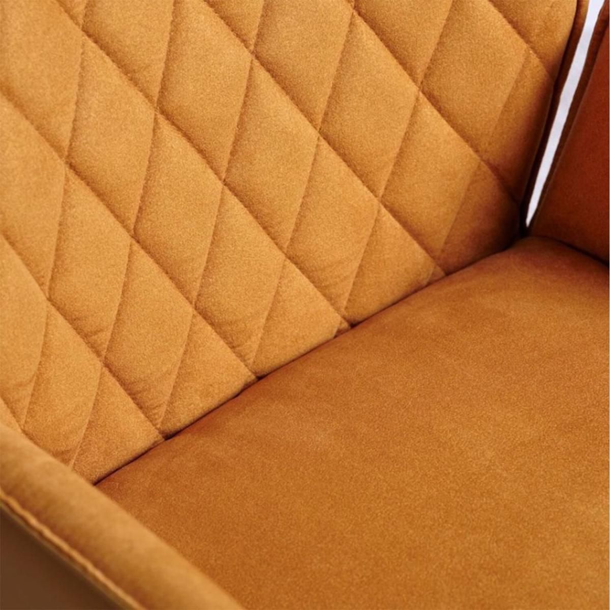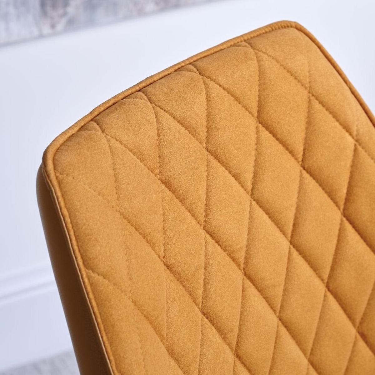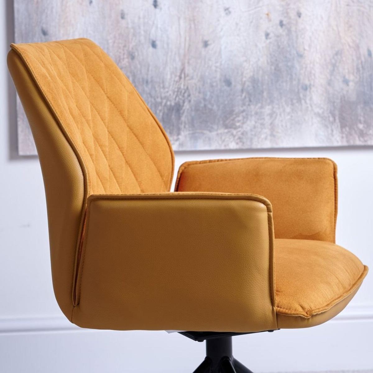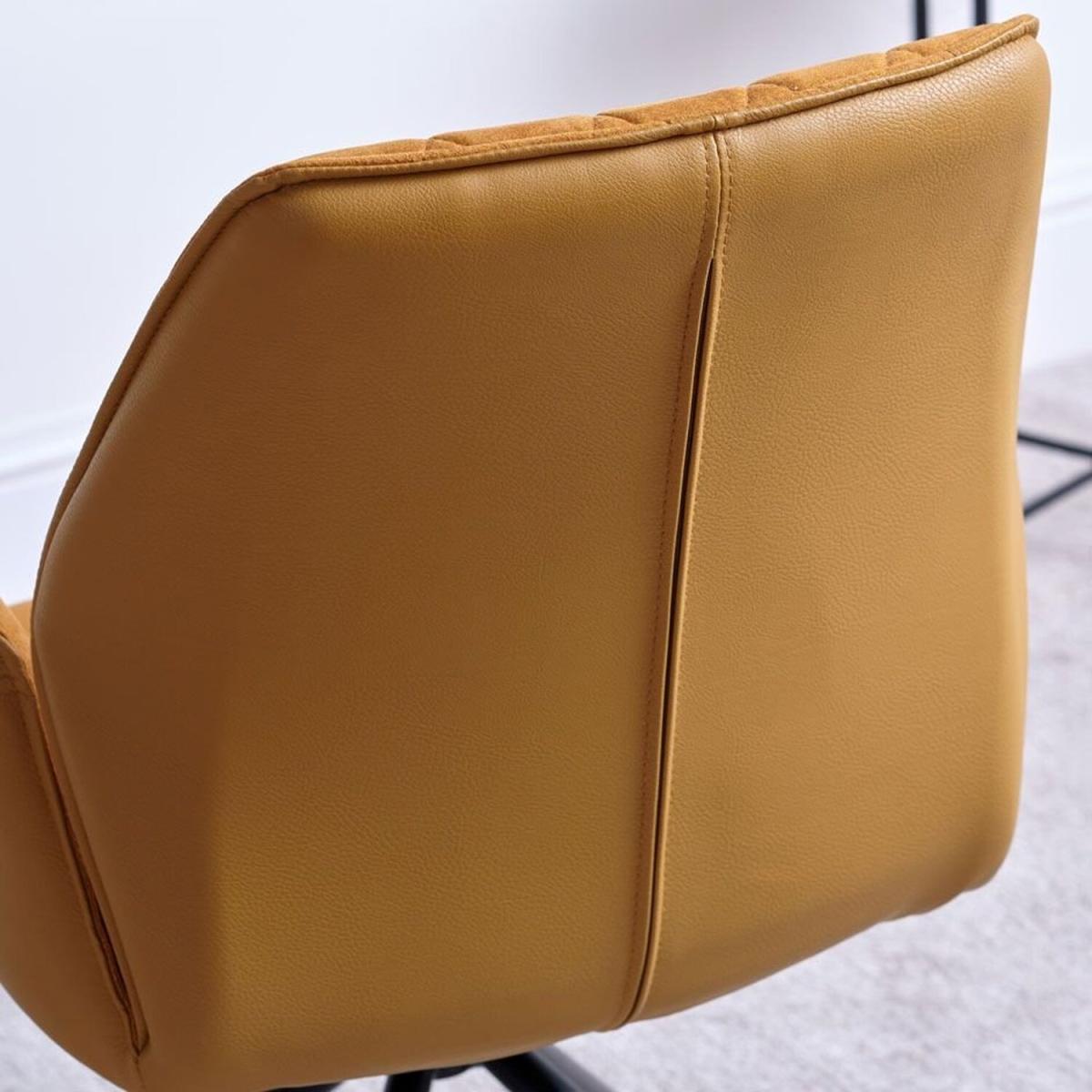 I love this mustard chair for its bold colour and modern silhouette, making it a great statement piece in both contemporary and eclectic interiors. Its quilted back adds a touch of texture, which works well within pared-back spaces or layered with patterned fabrics. It’s versatile enough to sit around a dining table or as an occasional chair in a home office or living area. To style it effectively, pair it with neutral or contrasting tones - think greys, navy, or even deeper jewel shades - to make the mustard pop. Practical tips include balancing its colour with accessories like cushions or throws, and considering its swivel base for ease of use, especially in a lively dining setting.