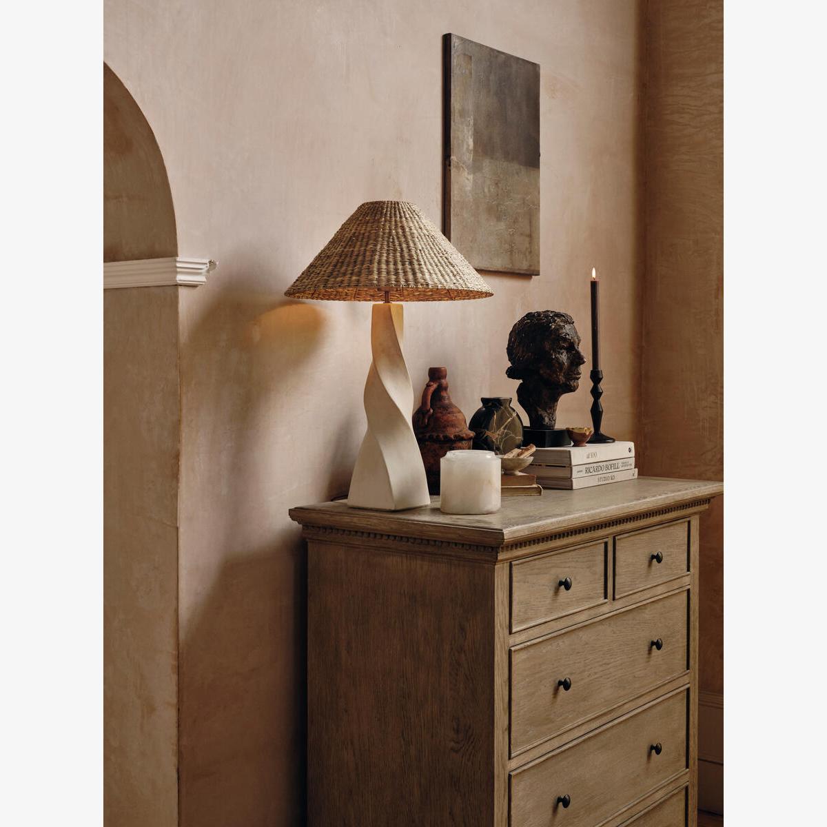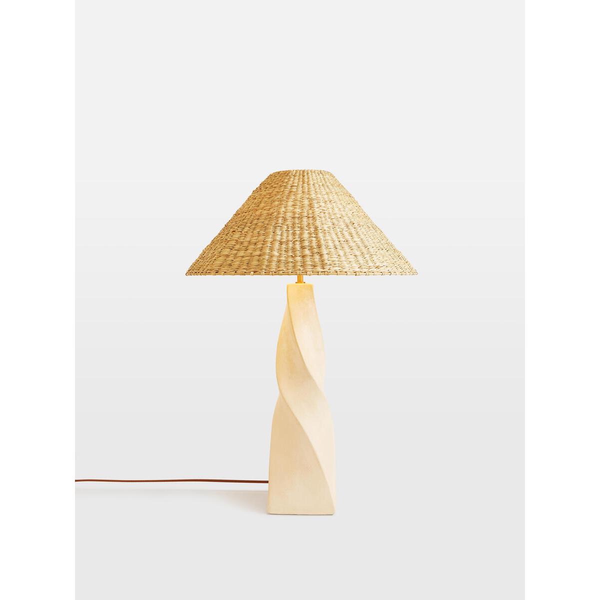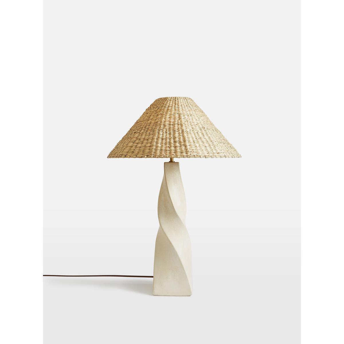 Our Twist table lamp is handwoven from natural seagrass with a twisted ceramic base and cone-shaped rattan shade. Taking cues from the natural surroundings of Soho Roc House, use this beach house-style floor lamp to bring a relaxed, coastal charm into your home. Natural matte ceramic glaze Natural handwoven seagrass shade Matte sculptural base Antique brass detail The tone of seagrass changes slightly when exposed to sunlight Inspired by Soho Roc House