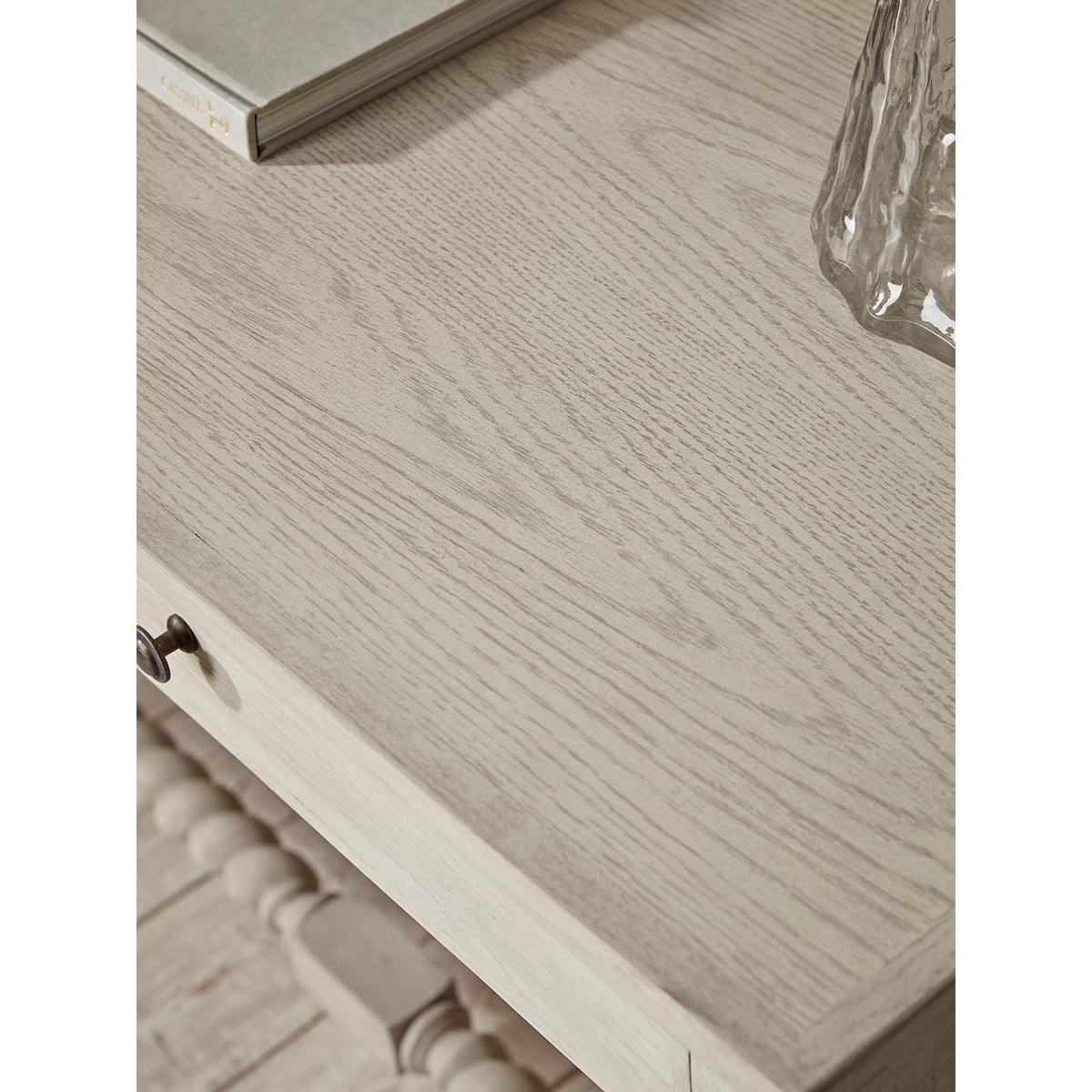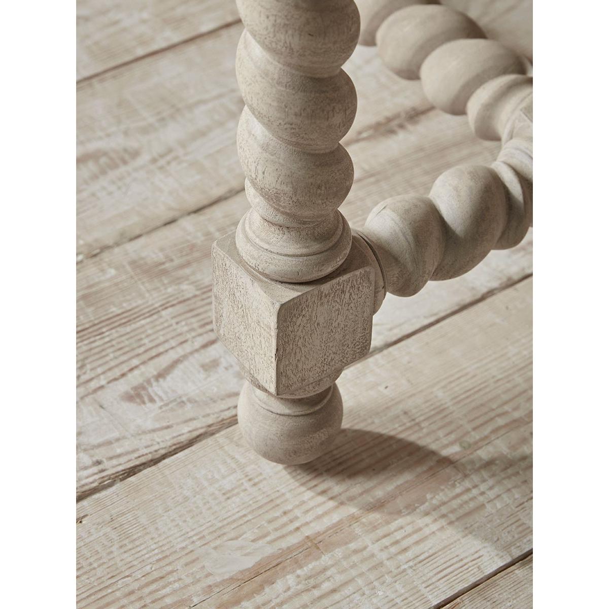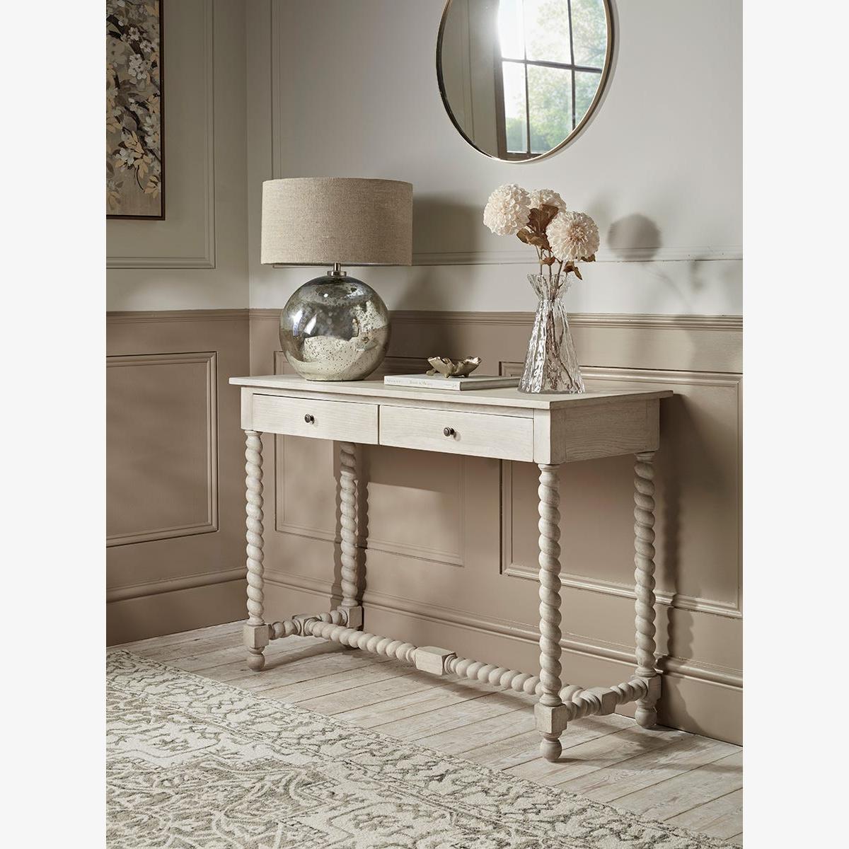 I’m drawn to this console for its distinctive turned legs and clean, pale finish - it adds just the right amount of texture without overwhelming a space. It works brilliantly in a hallway or behind a sofa in schemes from coastal and modern farmhouse to pared-back Scandinavian. To style, anchor it with a circular mirror or simple artwork above, then layer a slim table lamp on one side and a small stack of books or a shallow bowl on the other. A clear glass vase with dried stems echoes the light, neutral tones, and a couple of woven baskets tucked underneath keep clutter out of sight.
