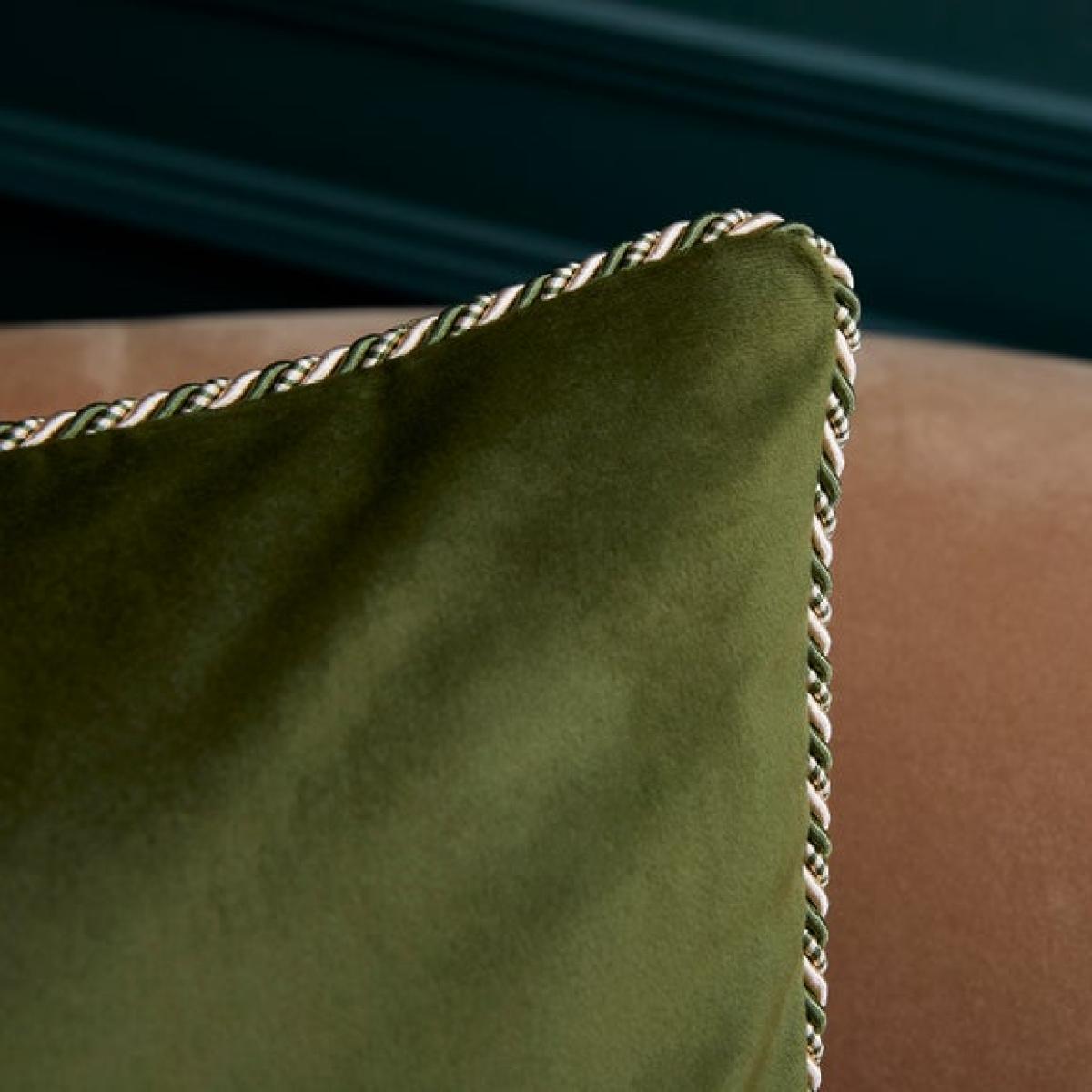 I love this cushion cover for adding a touch of contemporary texture to a variety of interiors. Its twisted trim detail lends a subtle visual interest without overpowering a scheme, making it versatile for both modern and traditional settings. It works particularly well on plush fabrics like velvet or linen sofas and armchairs, providing a stylish yet practical accessory. For styling tips, try layering it with other cushions in complementary shades or textures to create a cosy, inviting look. Its rich green hue also pairs beautifully with earth tones, metallic accents, or neutral palettes, making it a functional yet polished choice for enhancing your space.