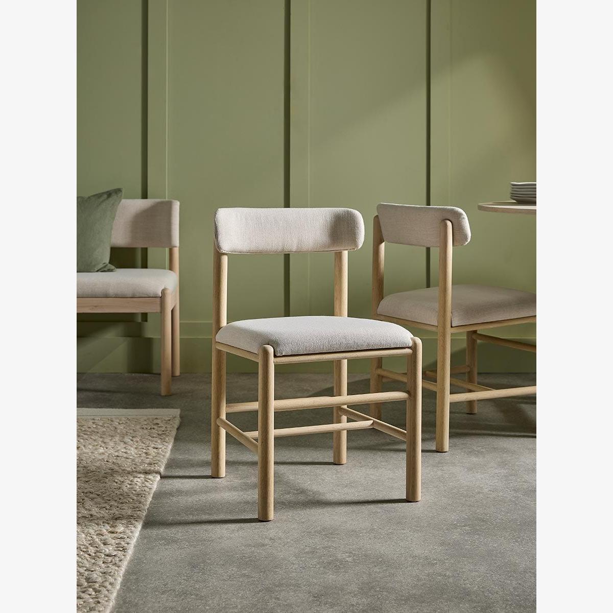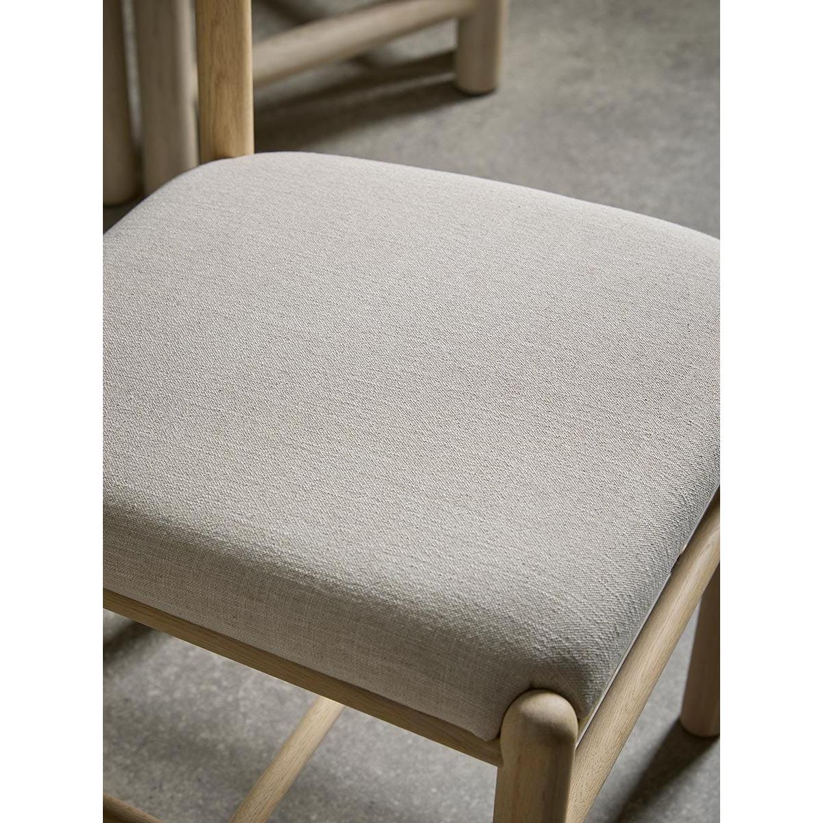Create the ultimate dining experience with our set of two Aalborg dining chairs. A modern frame with rounded legs is crafted from blonde oak and plywood, whilst the upholstered seat pads offer a comfortable place to land - especially with the curved back rest, which is sure to give plenty of support!