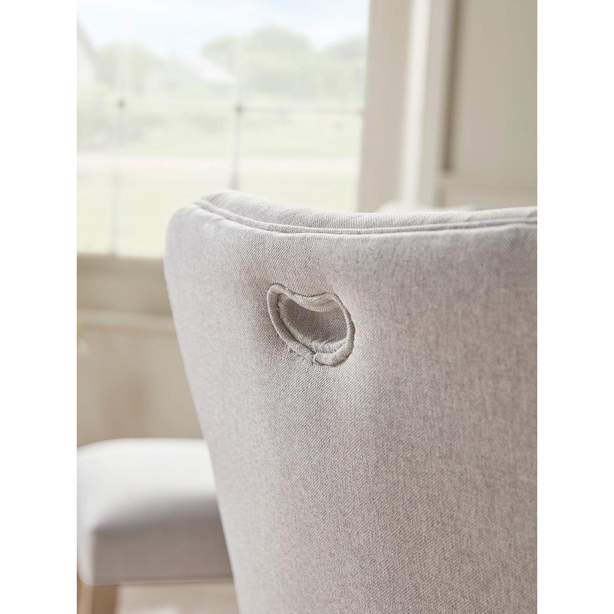 I’m a fan of the Adina chairs for their clean lines and subtle wing-back shape in a neutral grey linen-effect fabric - they bring just the right amount of softness without dominating the space. The pale oak legs play nicely in Scandi, coastal or modern-farmhouse schemes, and the simple loop handle at the back adds a handy touch when you’re rearranging seating. For styling, pair them with a solid wood or dark-stained table to create contrast, then introduce texture with a wool runner or linen-weave placemats. If you’d like extra comfort, add slim seat pads in muted tones or boucle cushions gently tied to the back. They’ll also work well as occasional seating beside a console or writing desk - just keep the upholstery vacuumed and spot-cleaned to prolong their crisp look.