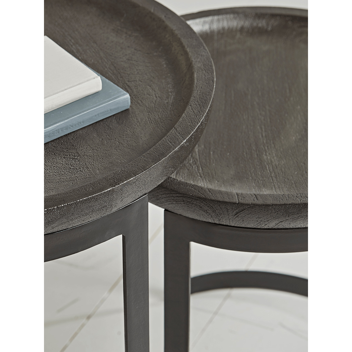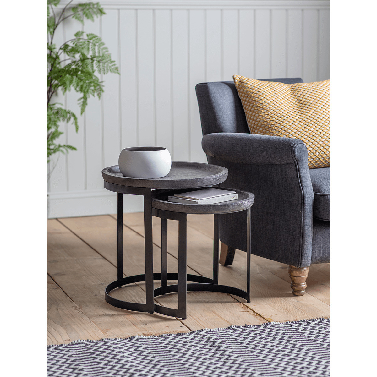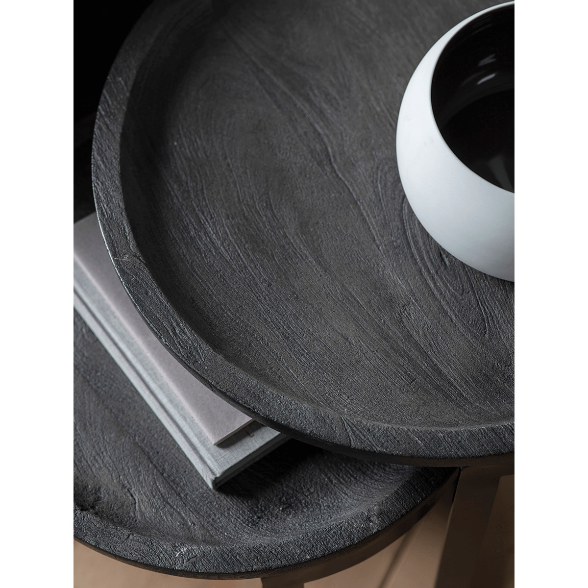 Update your look with contemporary Industrial style and our set of Ardmore Nesting Tables. With striking curved frames in rich matte-finished metal and a characterful black mango wood tray top, our tables are perfect as a side or lamp table set about your open living space. Otherwise, nest together to save on space - for use when needed.
