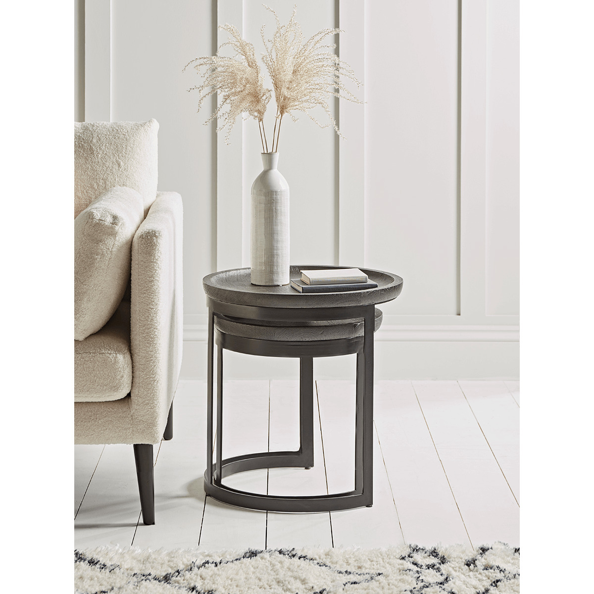 I’m a fan of these Ardmore tables for their clean lines and metal frame - it gives instant structure without feeling bulky. They sit neatly together when you want minimal footprint, then pull apart to serve drinks or display décor. They work well in contemporary or industrial schemes but also pair nicely with softer textiles in a Scandi-inspired lounge. Style the larger one with a small stack of books and a sculptural vase, then use the smaller tucked underneath for extra surface when needed.