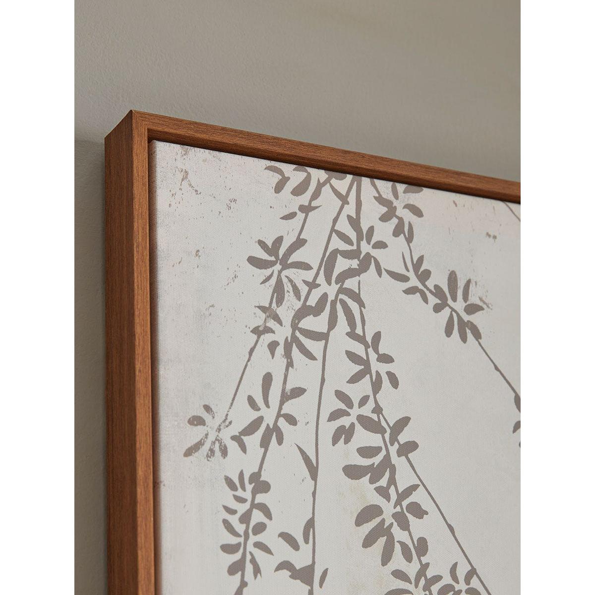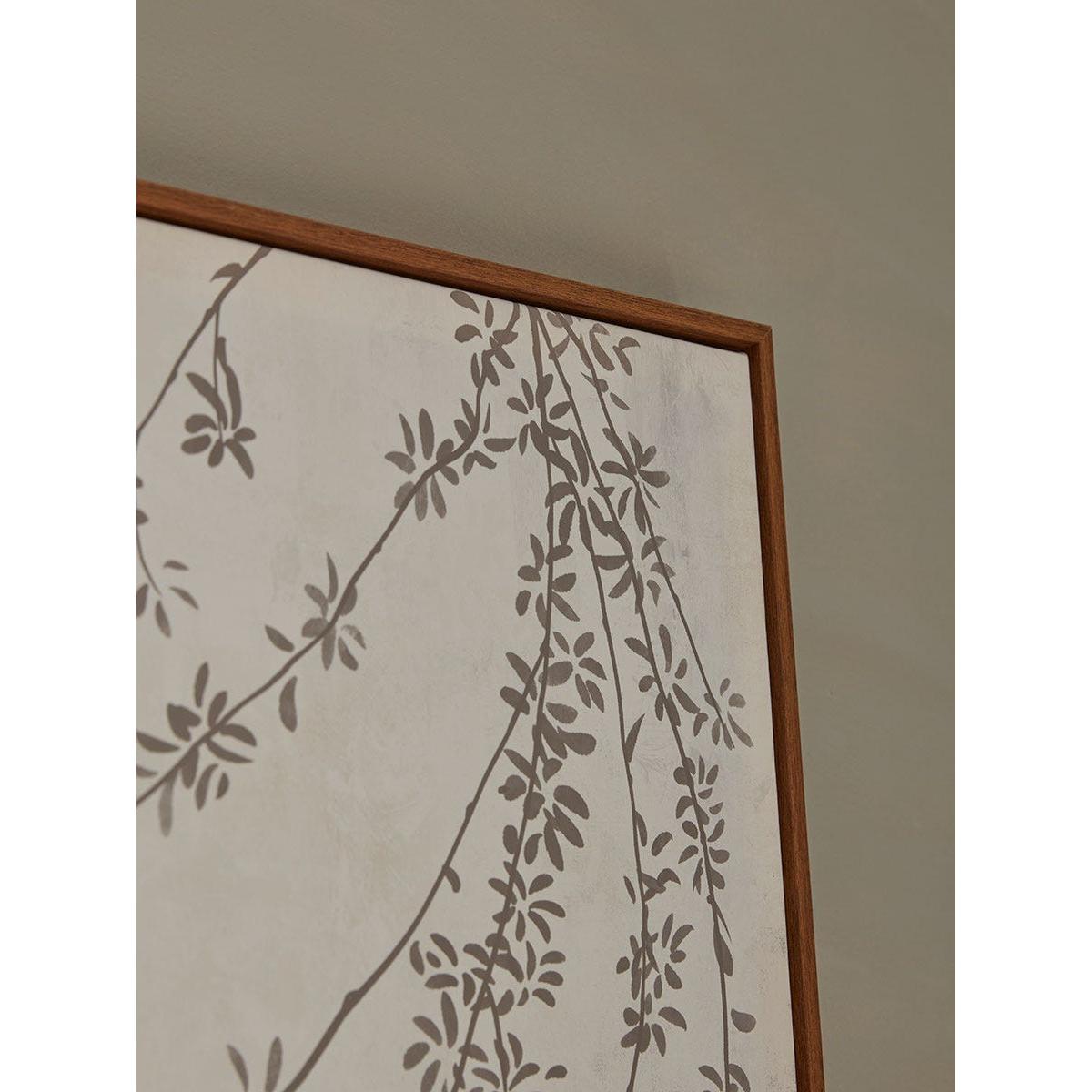 Framed in a darker oak, this set of two canvases feature a delicate blossom print that cascades down the artwork to meet at the bottom, perhaps like two branches of a blossoming tree. In a delicate grey tone, the blossom print sits beautifully on a slightly off white canvas, creating a contrast that is not too heavy, making this set of prints perfect for a more neutral scheme.