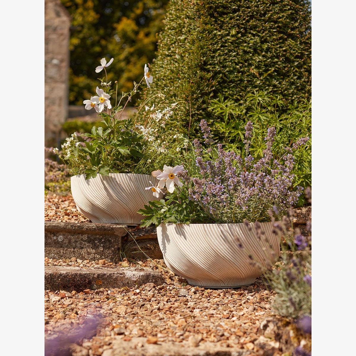 Beautifully crafted with a delicate spiral effect, our set of two Cream Spiral Planters bring elegance to your garden. In neutral cream tones, these planters are incredibly versatile, fitting into a variety of outdoor schemes. The swirl design adds plenty of character to create a wonderful place to display bright and blooming florals this summer.