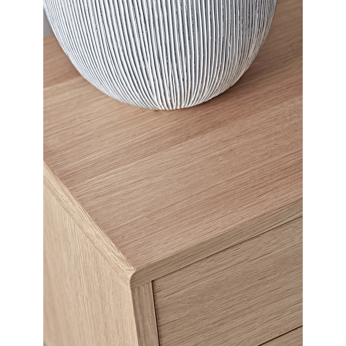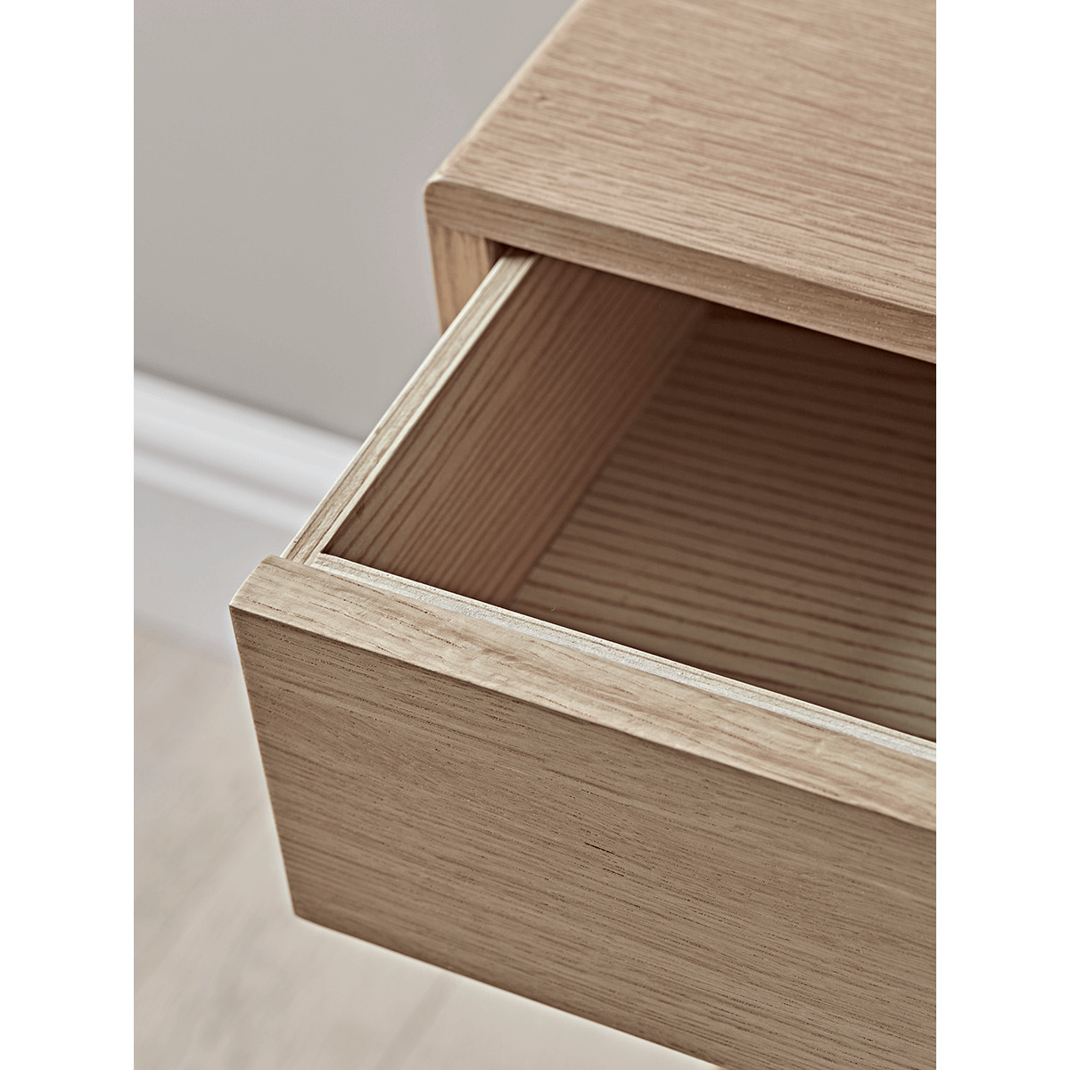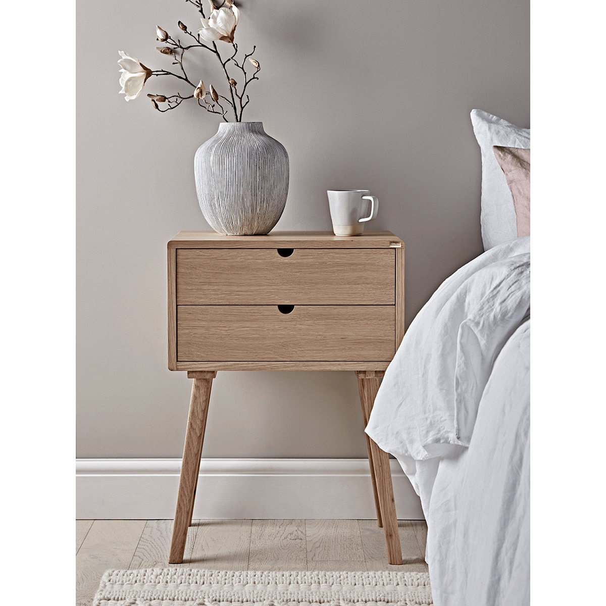 I love this little oak bedside table for its clean, timeless design and natural finish, which works beautifully in both Scandi and contemporary interiors. Its compact size makes it perfect for smaller bedrooms or those seeking a understated, functional piece. Styling tips include keeping the surface uncluttered with a simple vase or a cup, and adding layered textures nearby with soft bedding or a cosy throw to complement the wood tone. It’s versatile enough to blend seamlessly with other oak pieces or painted furniture, making it a practical yet stylish choice for a variety of bedroom schemes.