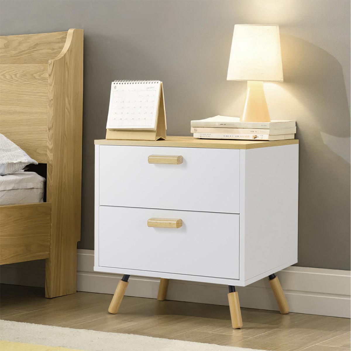 I love this little unit for its clean, minimalist design and versatility. It works particularly well in contemporary or Scandinavian-inspired interiors, thanks to its light wood accents and simple form. The two drawers provide practical storage for essentials like linens or stationery, helping to keep spaces tidy. For styling, consider placing a small decorative object or a plant on top to add personality, while keeping the area around it uncluttered for a modern feel. It's perfect as a bedside table, in a nursery, or even in a home office, making it a flexible piece that adapts easily to different settings.