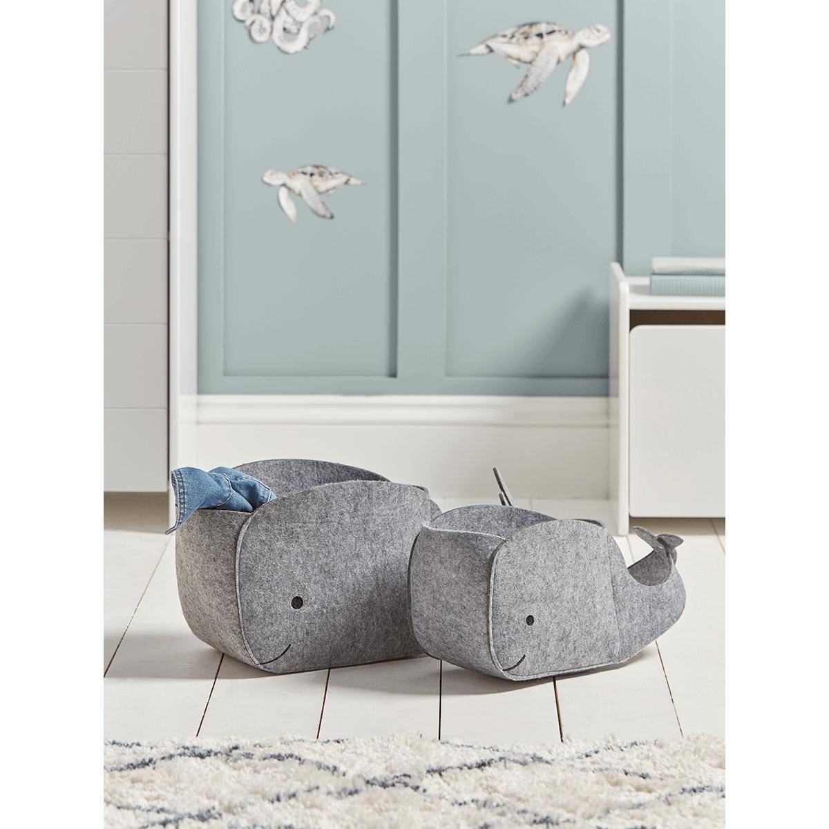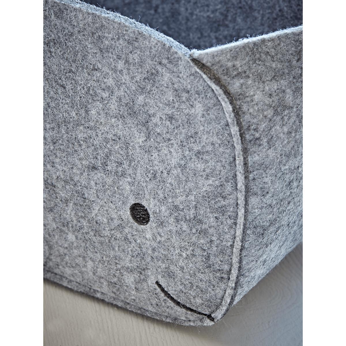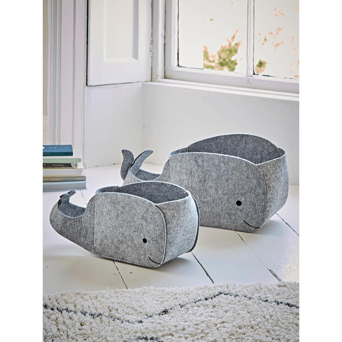 Our set of two large and small felt whales are on hand to carry all those toys when its tidy up time. Wonderfully characterful our baskets are crafted from felt, with the sweetest little tails and faces.