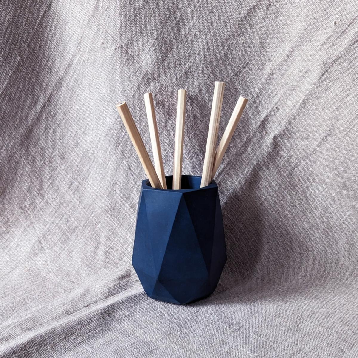 Handmade pen holders with a geometric, minimal design. They can be used to hold pens, pencils, makeup brushes, toothbrushes, art supplies, or even as vases for dried flowers. With added rubber feet to protect surfaces. With their clean, minimal lines and geometric design, these two pen holder will add a sophisticated and elegant touch to your home, whether you choose to place them at your desk, your bathroom or your living room.