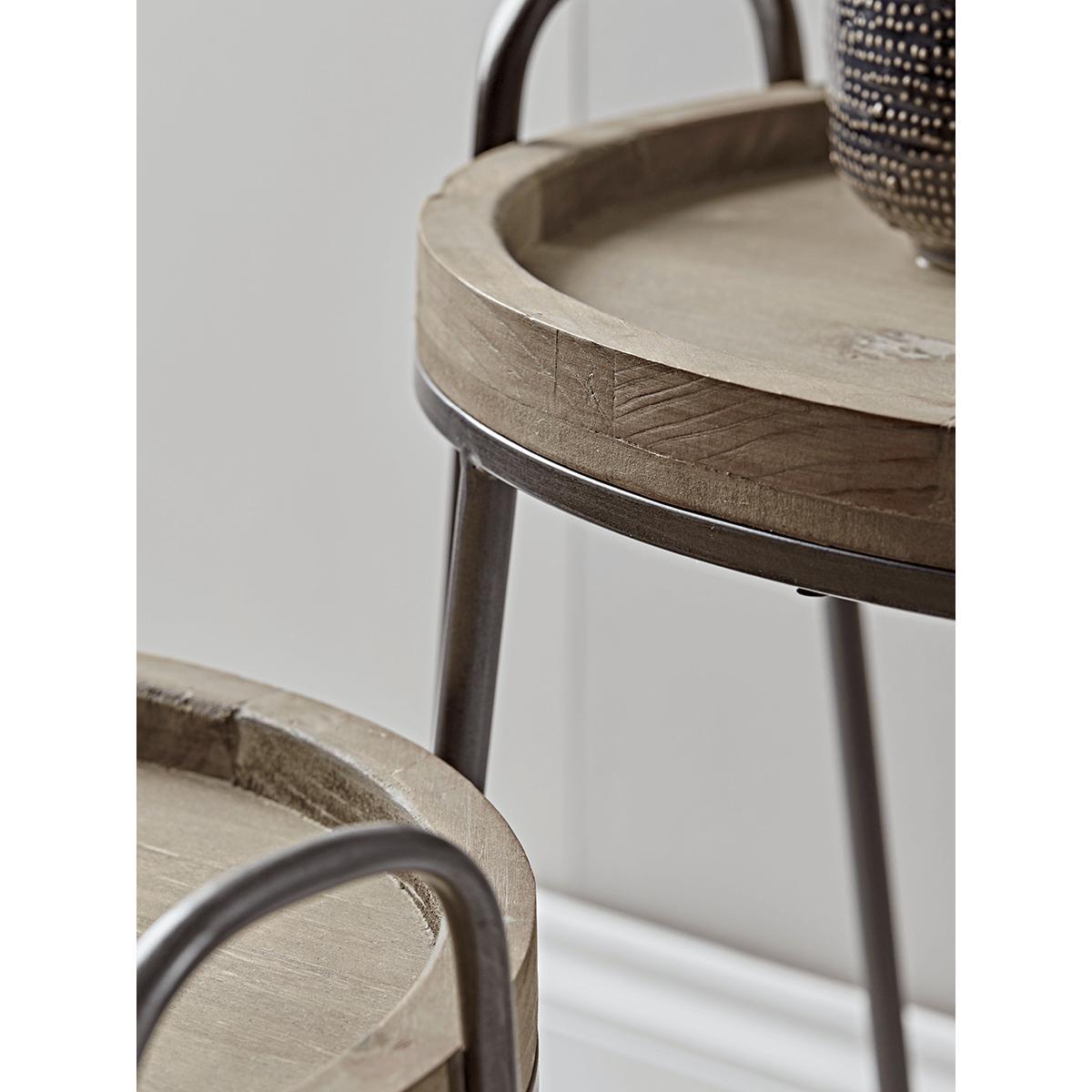 With round tops made from rustic fir, four legs and a unique hairpin frame complete with handles for easy lifting, our set of two nesting tables is perfect for your lounge or bedroom. Expand out to provide a handy extra surface when entertaining guests, then store away when not in use.