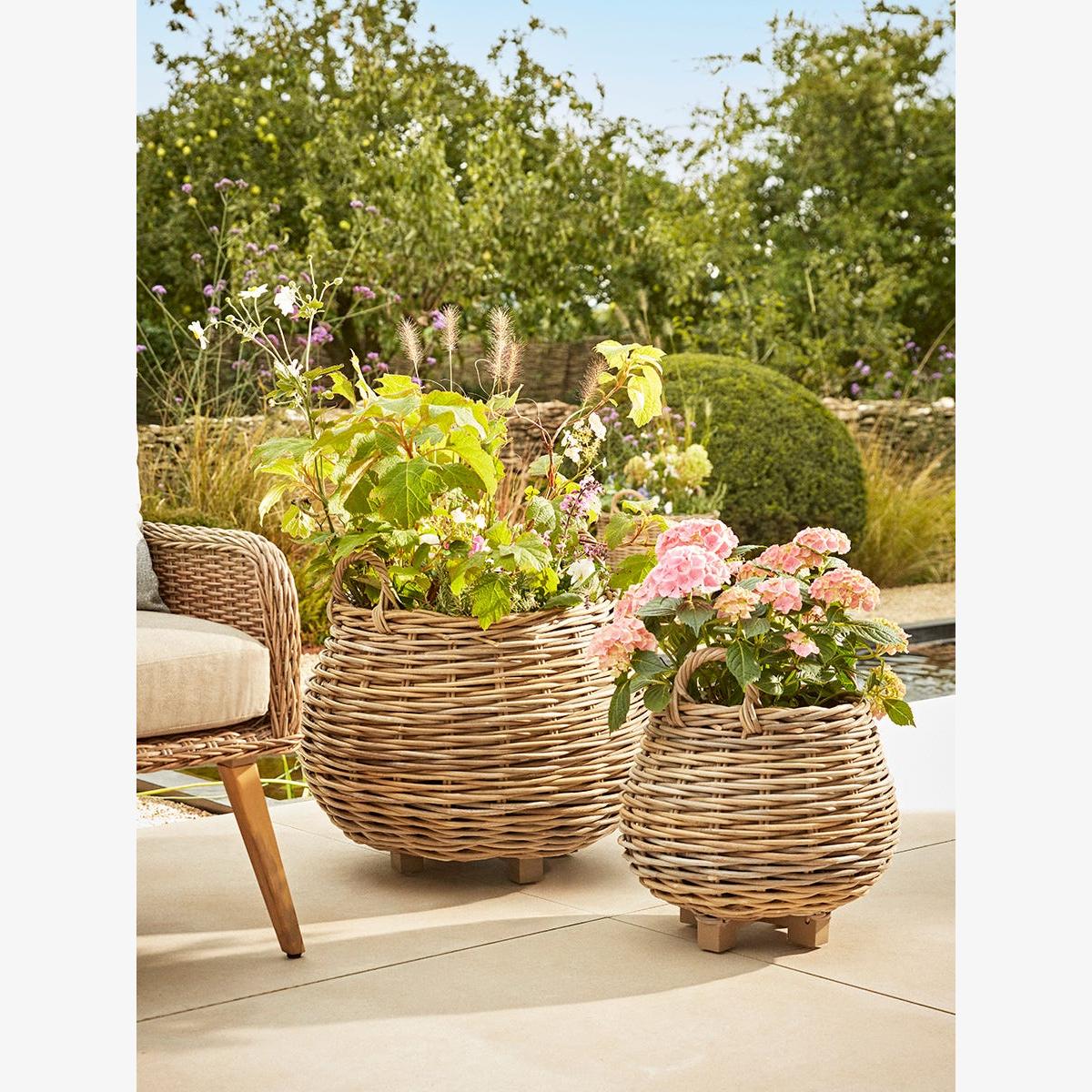 I love these rattan planters for their natural texture and versatile style. They work well in both indoor and outdoor settings, making them ideal for urban terraces, sunrooms, or conservatories. Their tapered shape adds interest without overwhelming space, and the woven design offers a relaxed yet refined look. Practical styling tips include pairing them with lush greenery or colourful flowering plants to add vibrancy, and using different sizes together to create a layered, curated display. These planters bring a tactile warmth that complements boho, coastal, or Scandinavian interiors effortlessly.