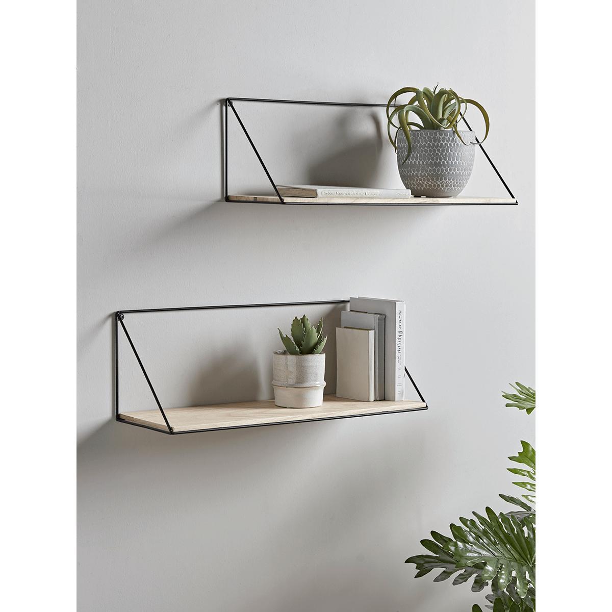 I’m a big fan of these industrial‐style shelves for their clean lines and sturdy build - the black metal frame paired with the pale wood shelf works equally well in urban lofts, Scandi‐inspired flats or any pared-back space that needs a touch of texture. They’re ideal for displaying a small cluster of books, a trailing plant or sculptural object without overwhelming a wall. For a balanced look, use the top shelf for lighter items such as framed prints or small planters, and the lower one for a couple of books laid horizontally with a decorative item on top. Keep negative space around each piece so the framework itself remains part of the composition.