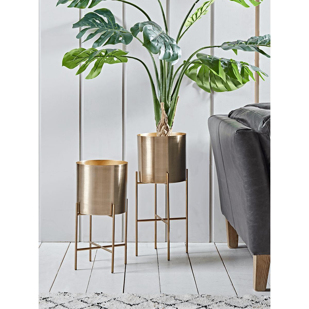 Our set of two tall planters each come with a slender standing frame, and a fine brushed brass finished pot. Our set has a refined look for those wanting to pair with a minimalist interior - to add a brass toned accent and a botanical touch - however, we are all agreed that our planters would look wonderful in any room, of any home.