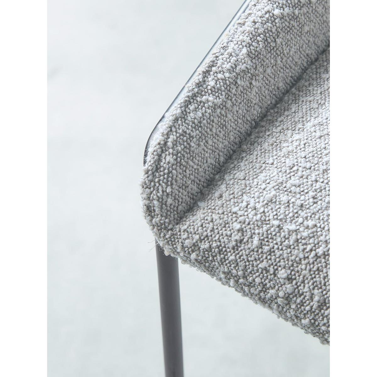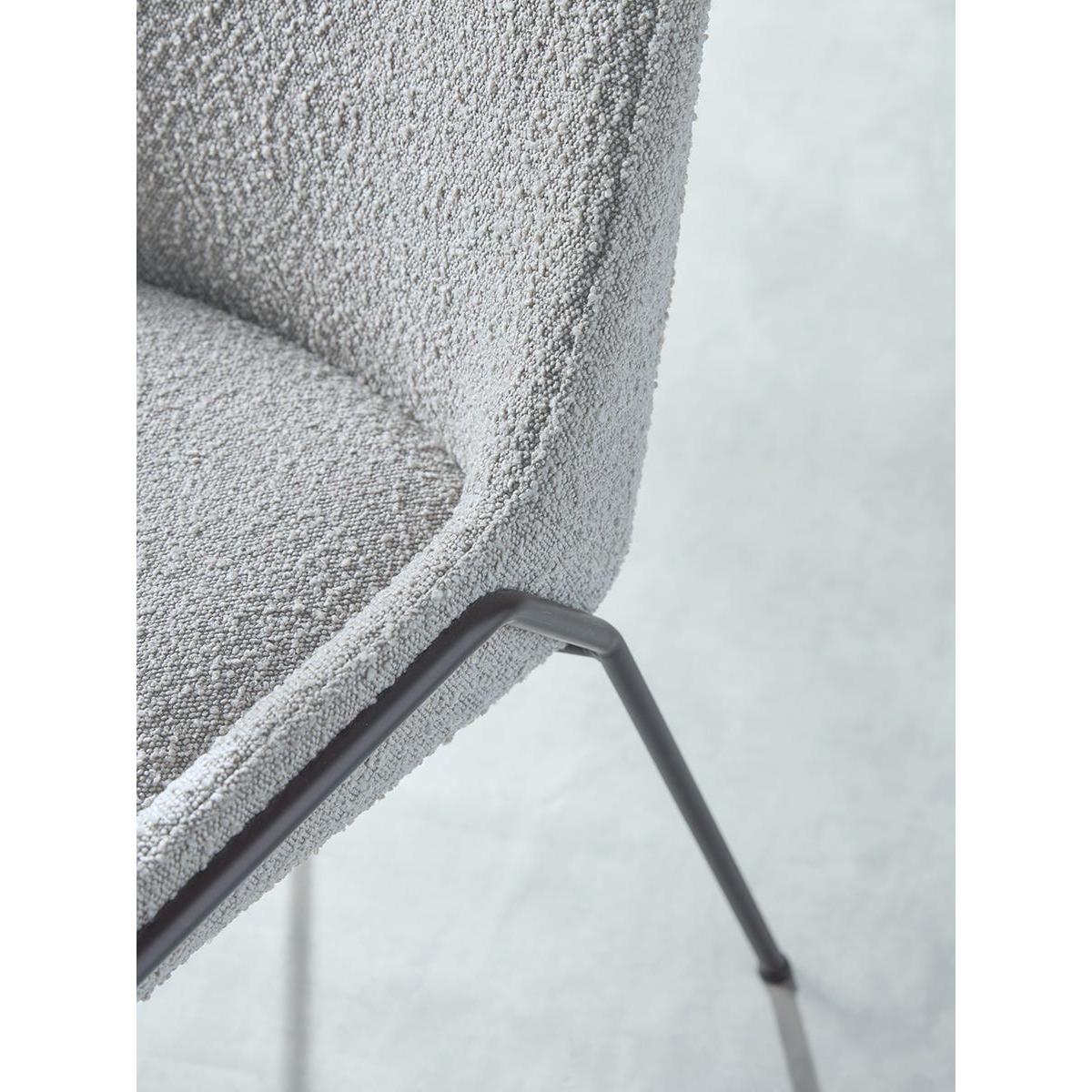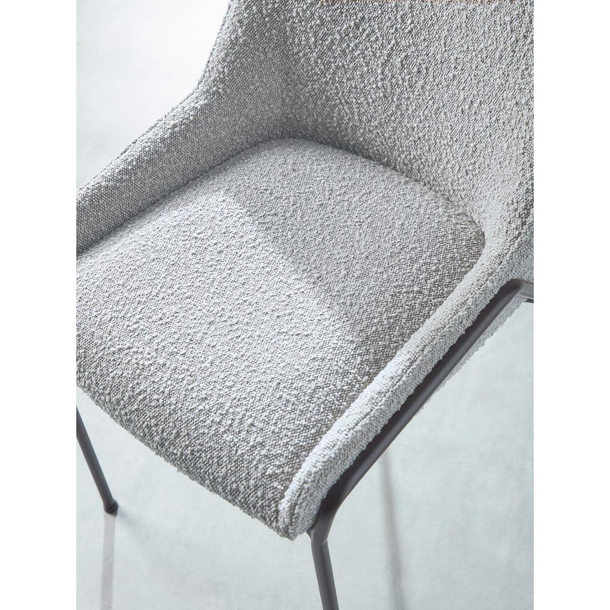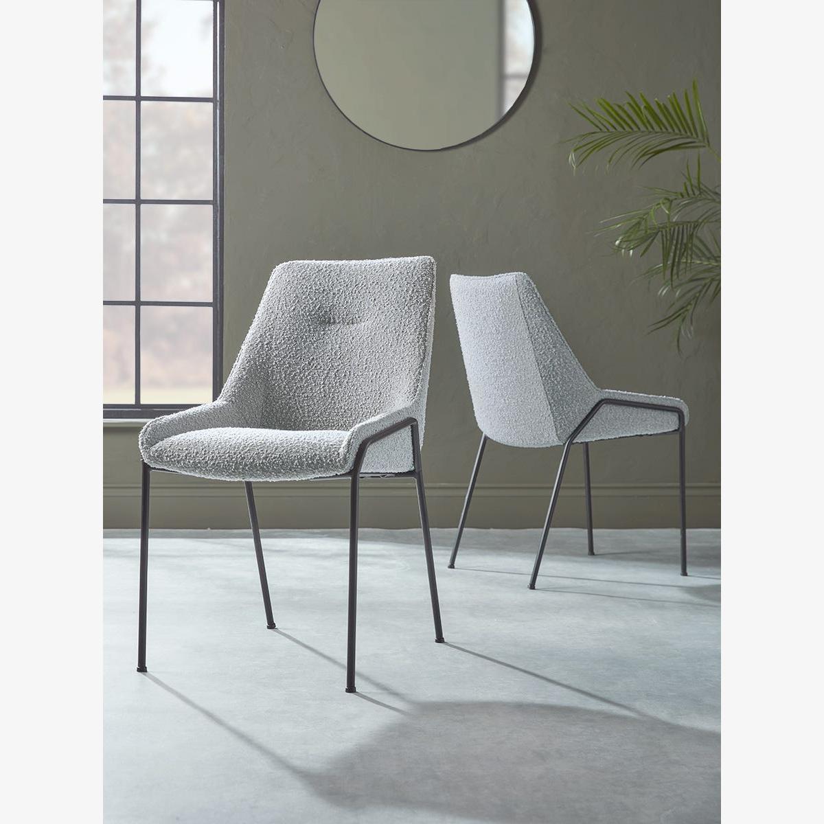 With a well defined moulded shape to the seat and slender black metal legs, these simple dining chairs will bring a streamlined look to your kitchen or dining room. They are upholstered in a stylish boucle fabric in a neutral grey which adds a touch of luxury, as well as pleasing visual texture. Our Piera Dining Chairs are sold in pairs.