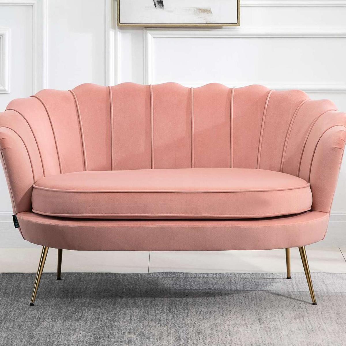 This two seater sofa in pink velvet with a scallop back offers a charming, retro-inspired touch that works beautifully in both modern and vintage interiors. I love how its soft hue and plush texture add warmth and femininity, making it an ideal statement piece in a cosy living room or a chic sitting area. Practical styling tips include pairing it with neutral or muted tones to let the colour stand out, or layering with textured cushions and throws for added depth. Its elegant shape and delicate legs provide a refined silhouette that balances well with bolder accessories or minimalistic decor. Perfect for creating a cosy yet stylish vibe, it’s a versatile option that can easily be the focal point of many interiors.