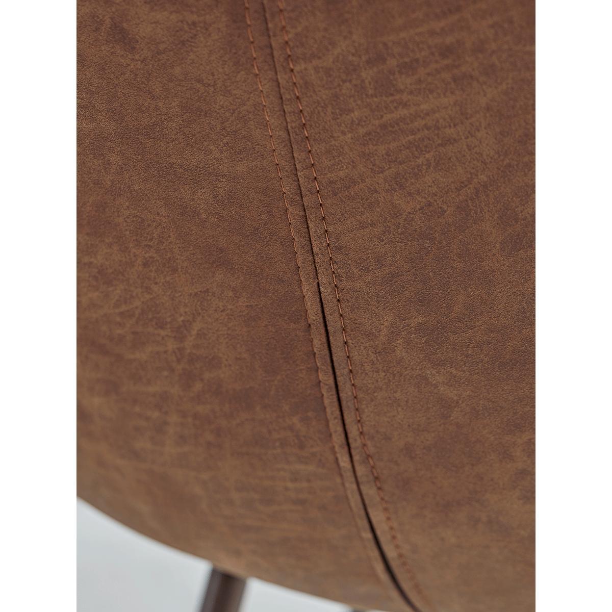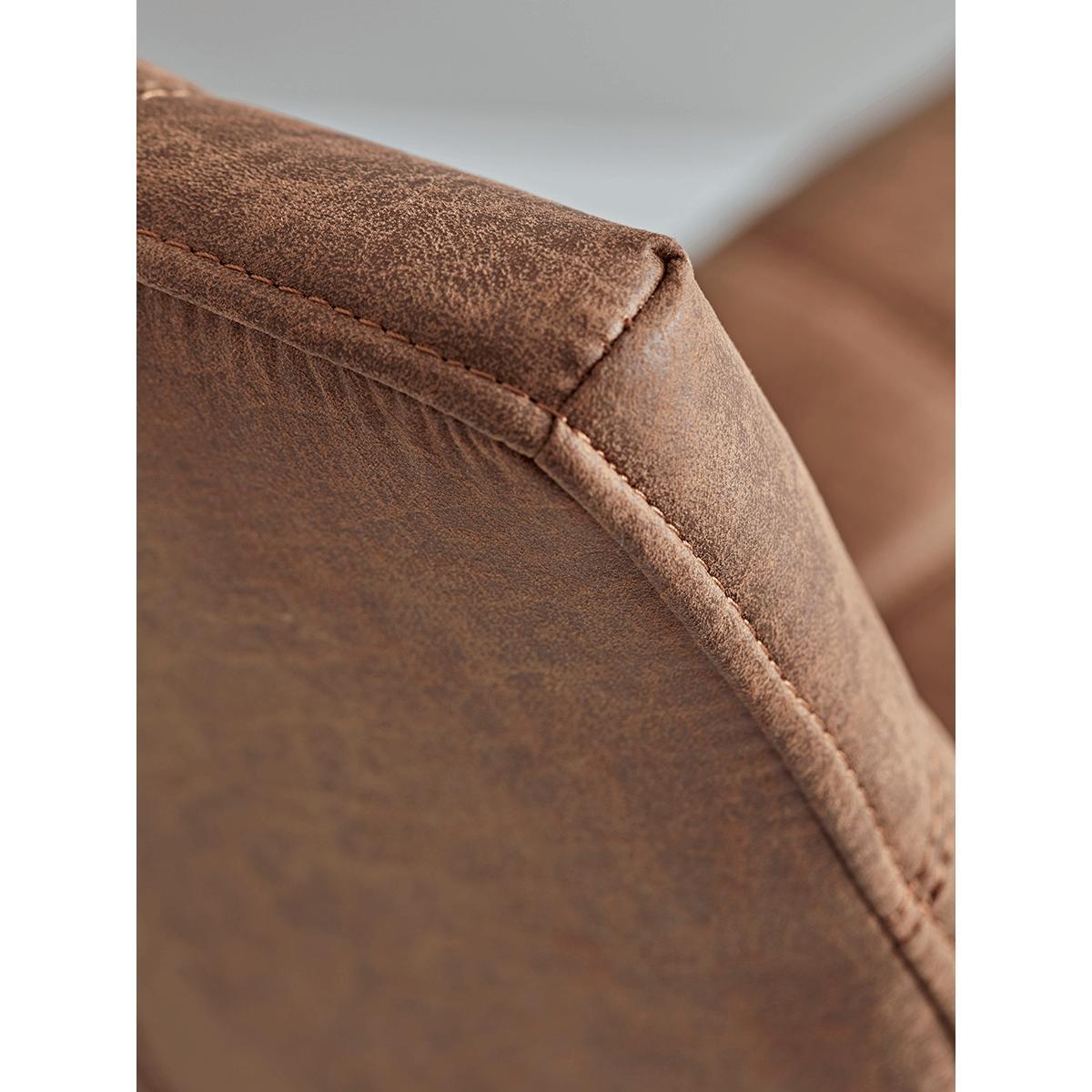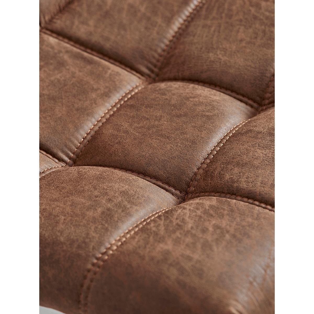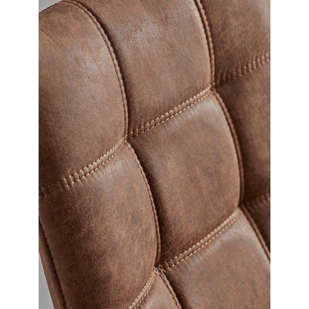 With a sleek, simple silhouette and a comfortable seat upholstered in faux leather, our set of two factory style dining chairs in tan will make an edgy addition to your kitchen décor. The fabric is finished in a quilted effect and sits on iron legs.