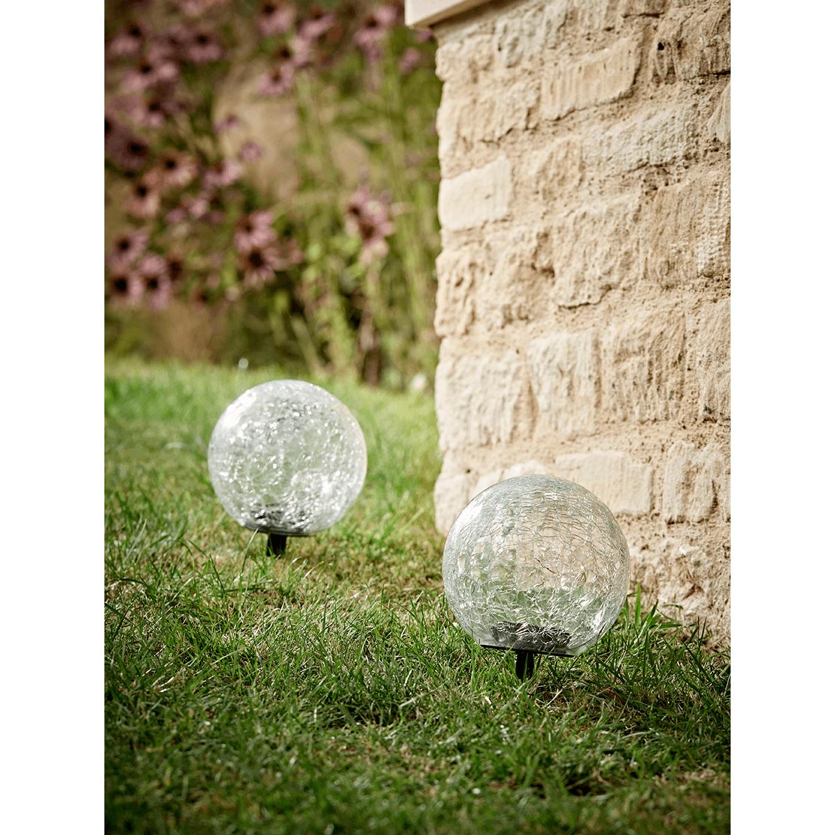 Perfect for lighting those quiet corners of your garden, our set of two stake lights can be positioned wherever looks best in your space. Each light has a glass globe casing with a gorgeous crackle effect to the surface.