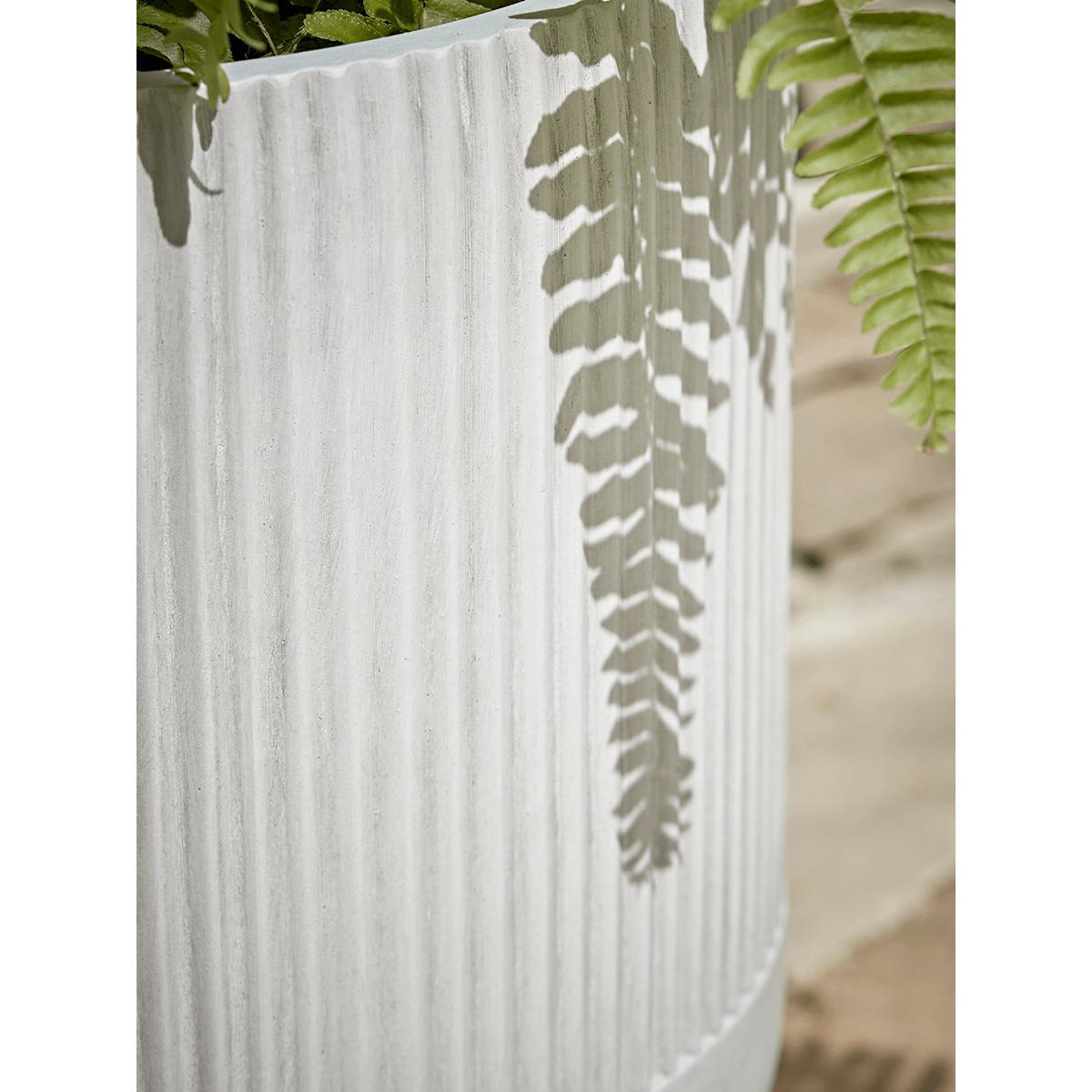 I really like this pair of planters because their modern, minimal design makes them versatile for a range of interiors. The light grey finish adds a subtle sophistication that works well in both contemporary and Scandinavian-style spaces, while the striped texture gives them a touch of interest without being overwhelming. They're perfect for brightening up living rooms, offices, or even kitchens, especially when filled with lush greenery like ferns or trailing plants. For styling tips, consider pairing them with light-toned furniture or natural fibres to maintain a fresh look, and they work well as statement pieces when grouped together or used as accents on shelves and side tables. Their robust build and light colour make them easy to incorporate into most colour schemes, offering a stylish yet practical way to introduce greenery indoors.