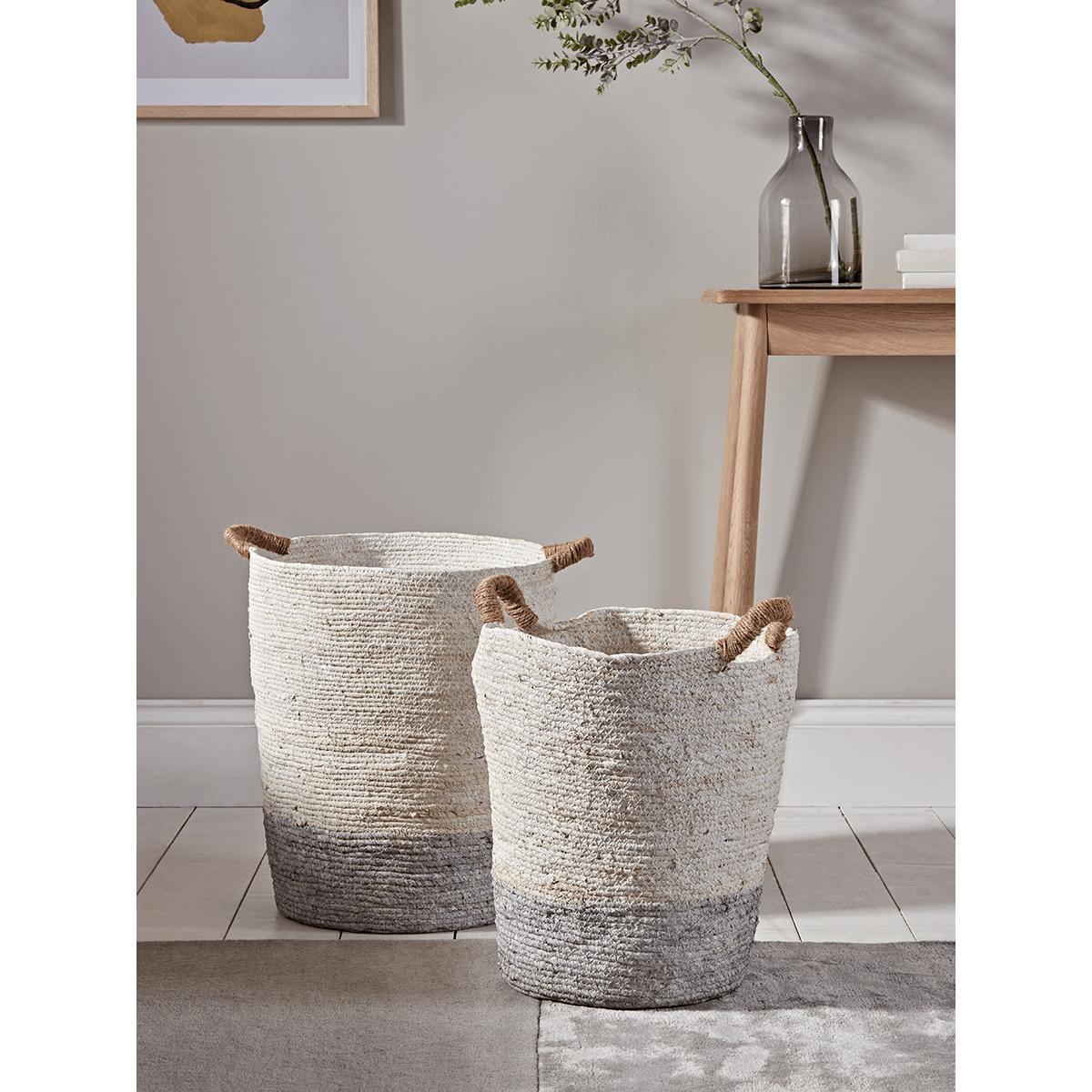 Two Tall Grey & Natural Baskets