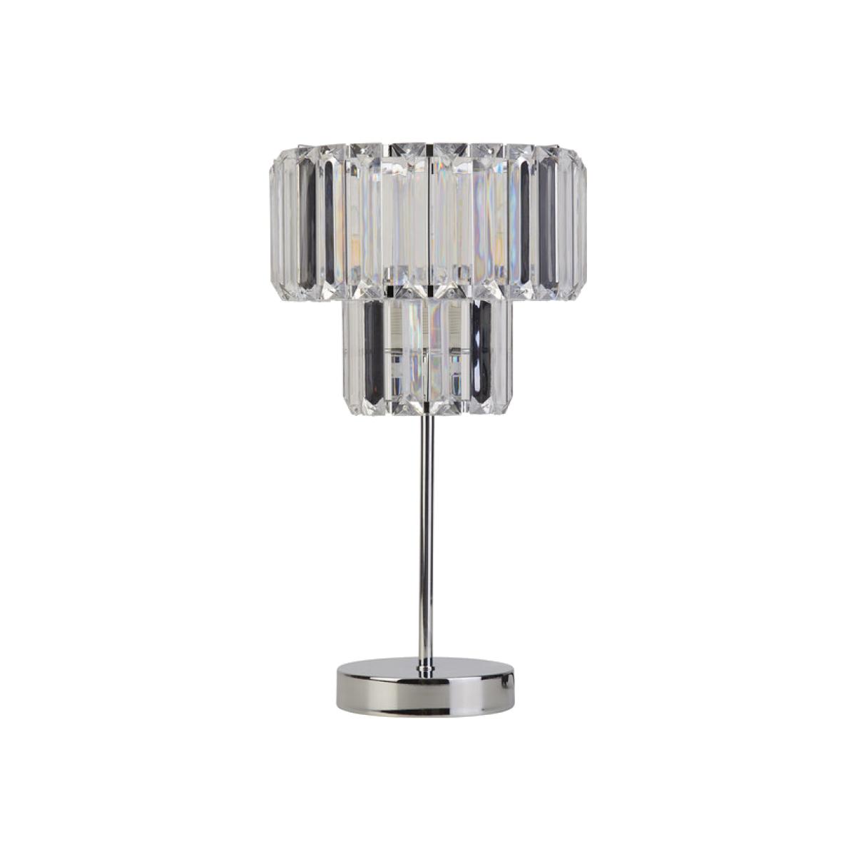 With one tier of acrylic slats dropped from the other, this Two Tier Acrylic Table Lamp will appear to be made of shining crystal when you turn the light on. With a polished chrome stand and a sturdy base, this table lamp will look perfectly graceful set next to your favourite spot on the sofa for a reading light, or placed next to your bed to cast an elegant atmosphere over your bedroom.