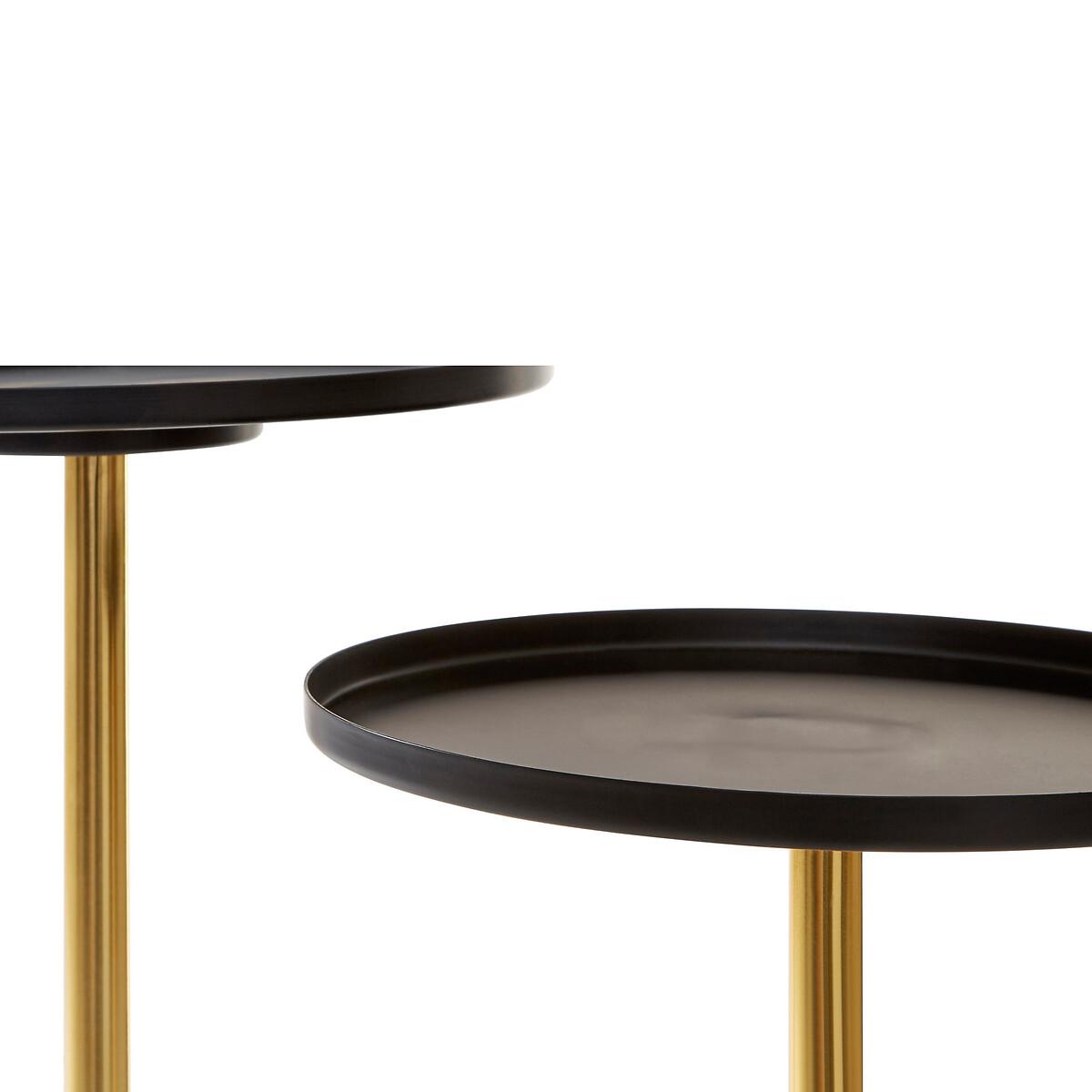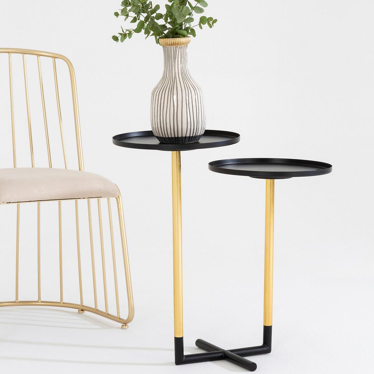 These minimal handcrafted side tables are inspired by the gyroscopic art of plate spinning. The tubular legs are made from iron and combine warm gold and sleek black colours for a luxury look. The intersecting design at the base ensures that the table remains stable. Both tabletops are made from iron and are configured at slightly different heights, with a black finish to complement the legs. Perfect as a plant stand, or as a sofa end table, this is sure to add style and sophistication to any living space. Product details Handcrafted product Tubular metal legs Metal tabletops with small lip Assembly required Care instructions Wipe clean with a soft cloth. Do not use abrasive cleaners Weight capacity - 5 kg. Product Composition - Metal. Product Dimensions - 66 cm x64 cm x35 cm , Weight - 4.3 kg. Package Dimensions - 42 cm x 38 cm x 18 cm, Weight 6 kg. This product will be dispatched by one of our trusted suppliers. You’ll be contacted by their selected courier about your delivery. PREMI01