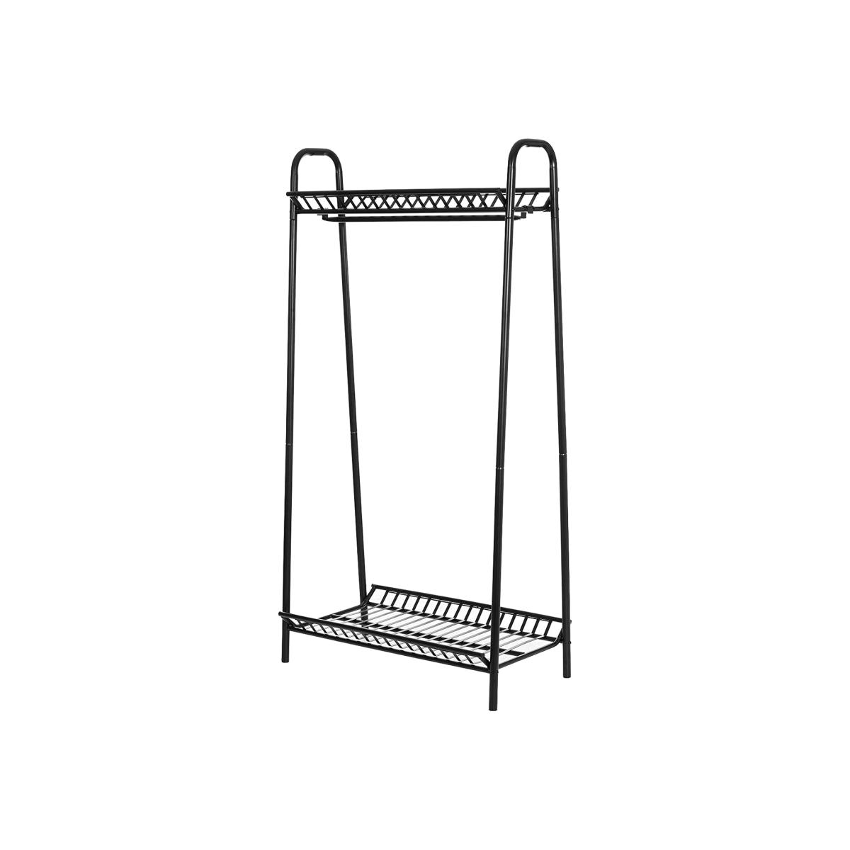 Two Tier Vintage Style Black Steel Clothes Rack with Two Storage Shelves - Black