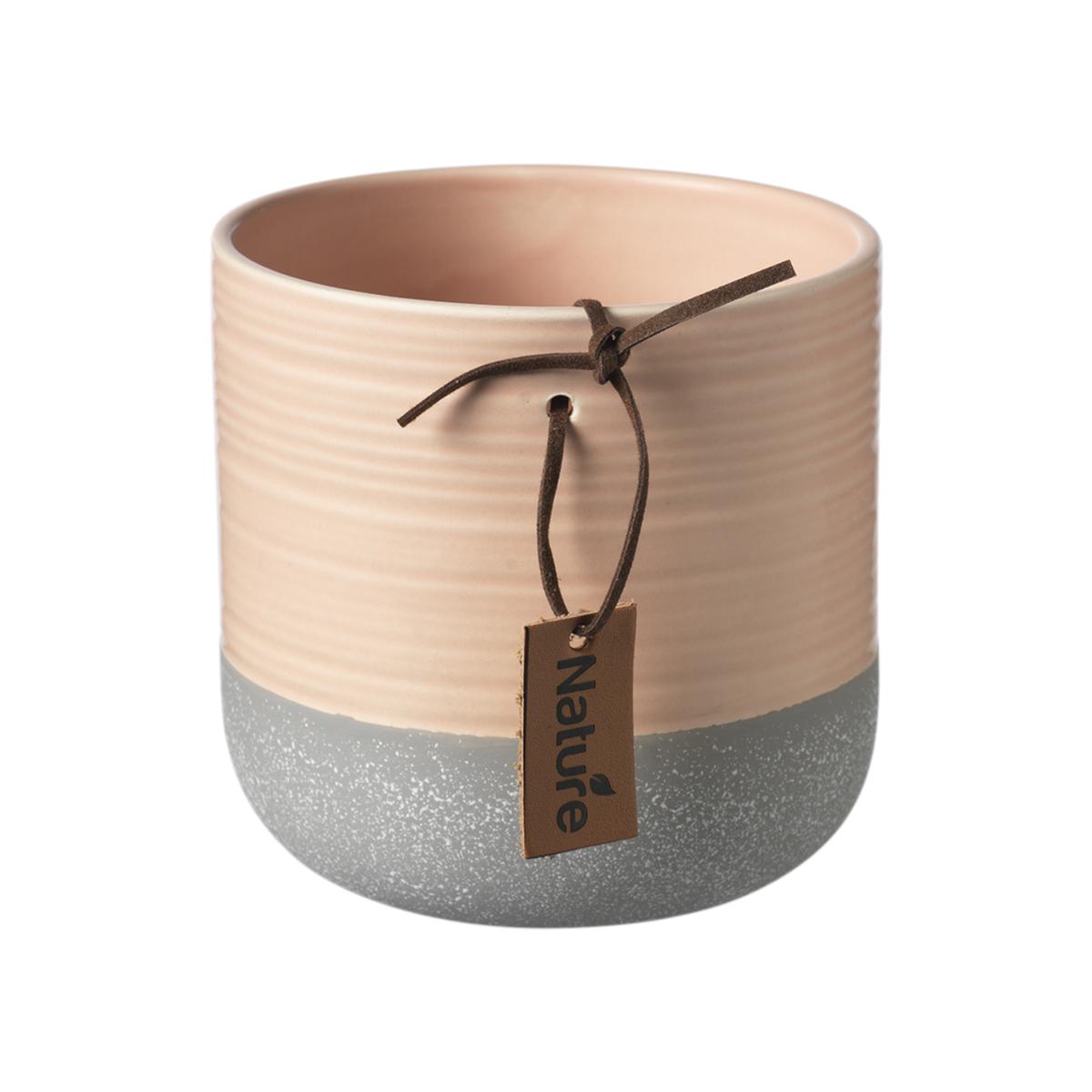 This ceramic pot is perfect to give your indoor plants an uplift. Two tone design with a natural colour cement base. Comes with a hanging tag that reads 'Nature'. The pot has a ridged design. Available in lettuce green or tropical peach. A great addition to any home decor.