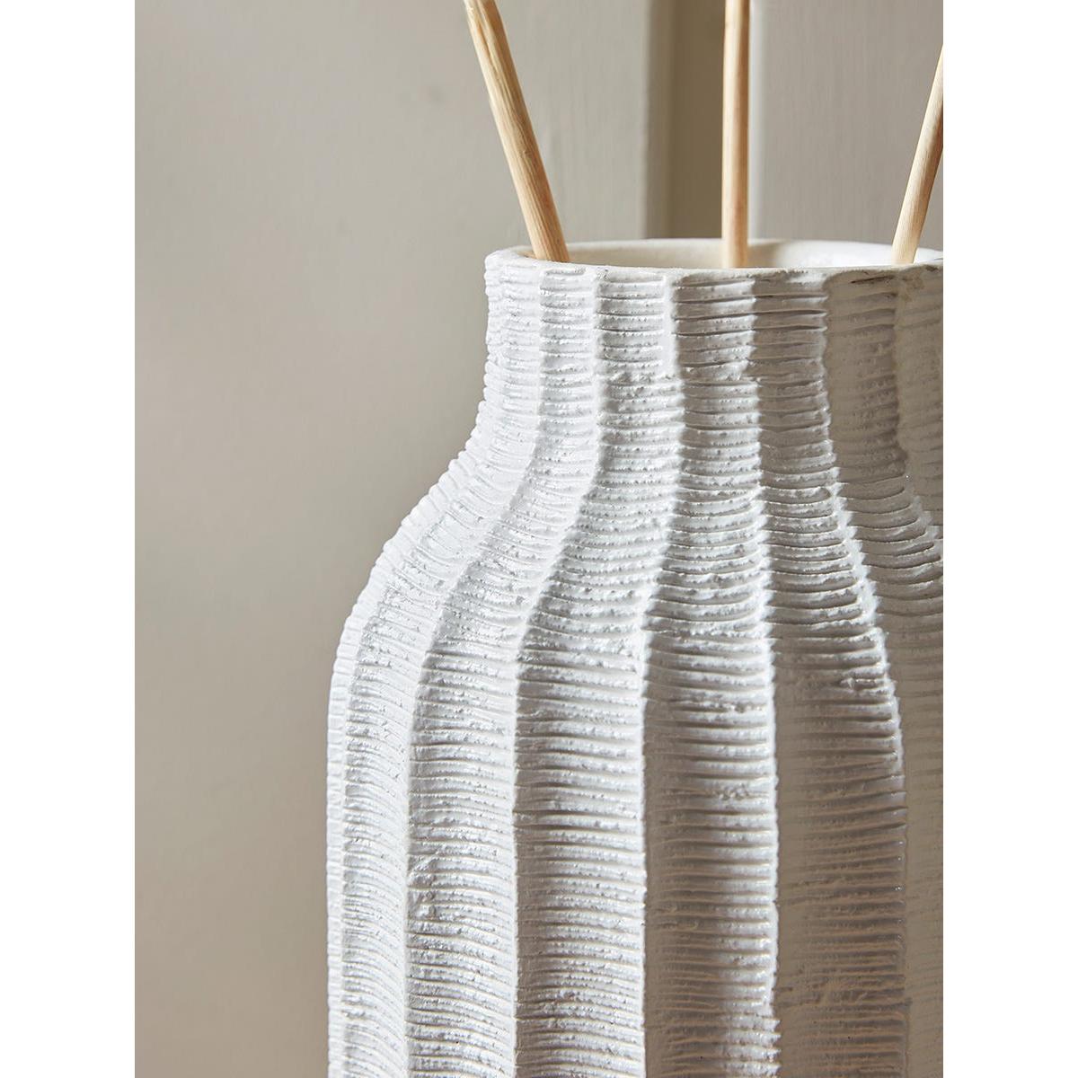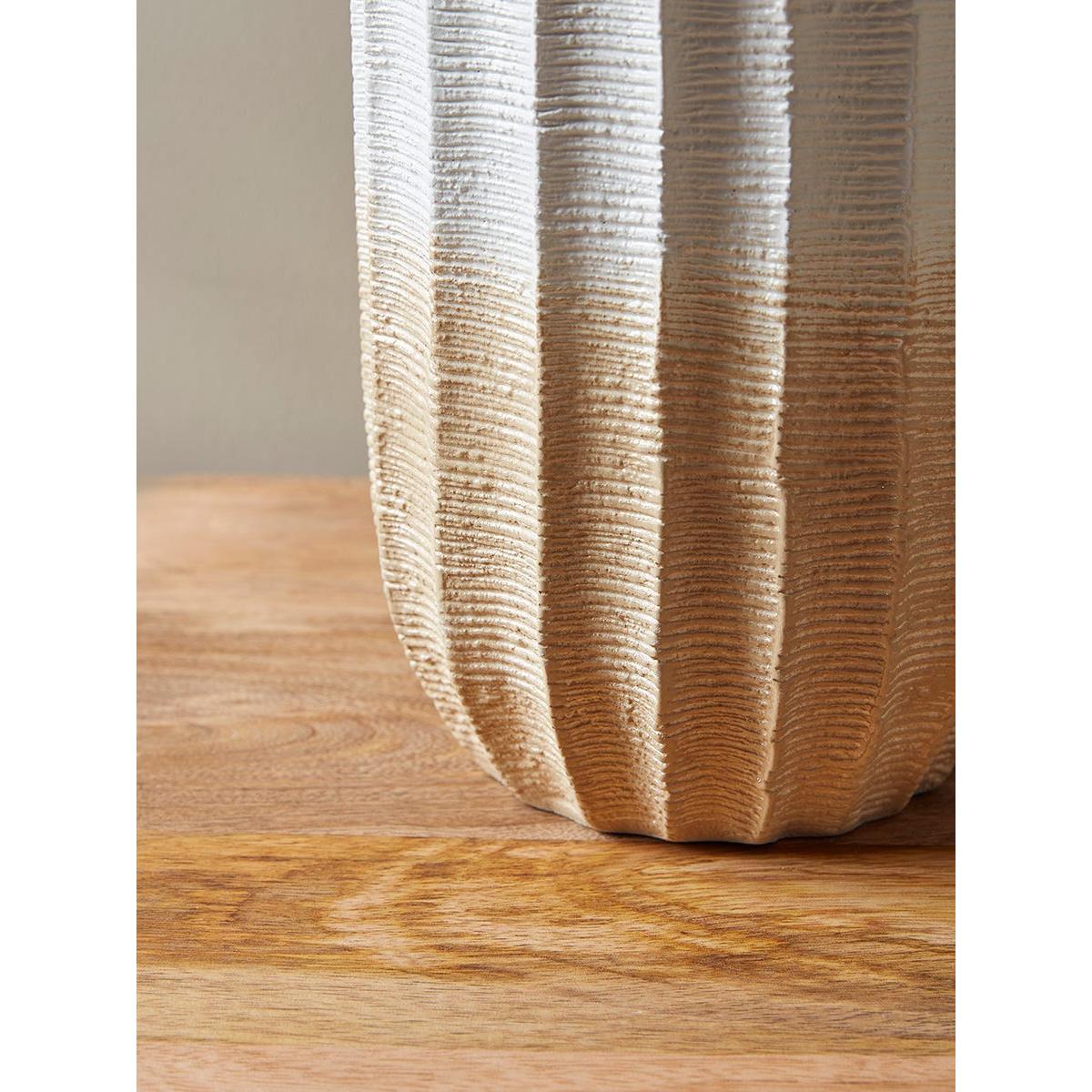 Tall and elegant in stature, this bottle shaped vase is crafted from ceramic for a rustic and relaxed finish. Intricate textural detailing surrounds the vase and pairs with a two-tone neutral scheme that delicately blends from a darker beige to a bright white, making it ideal for a neutral and pared-back interior.