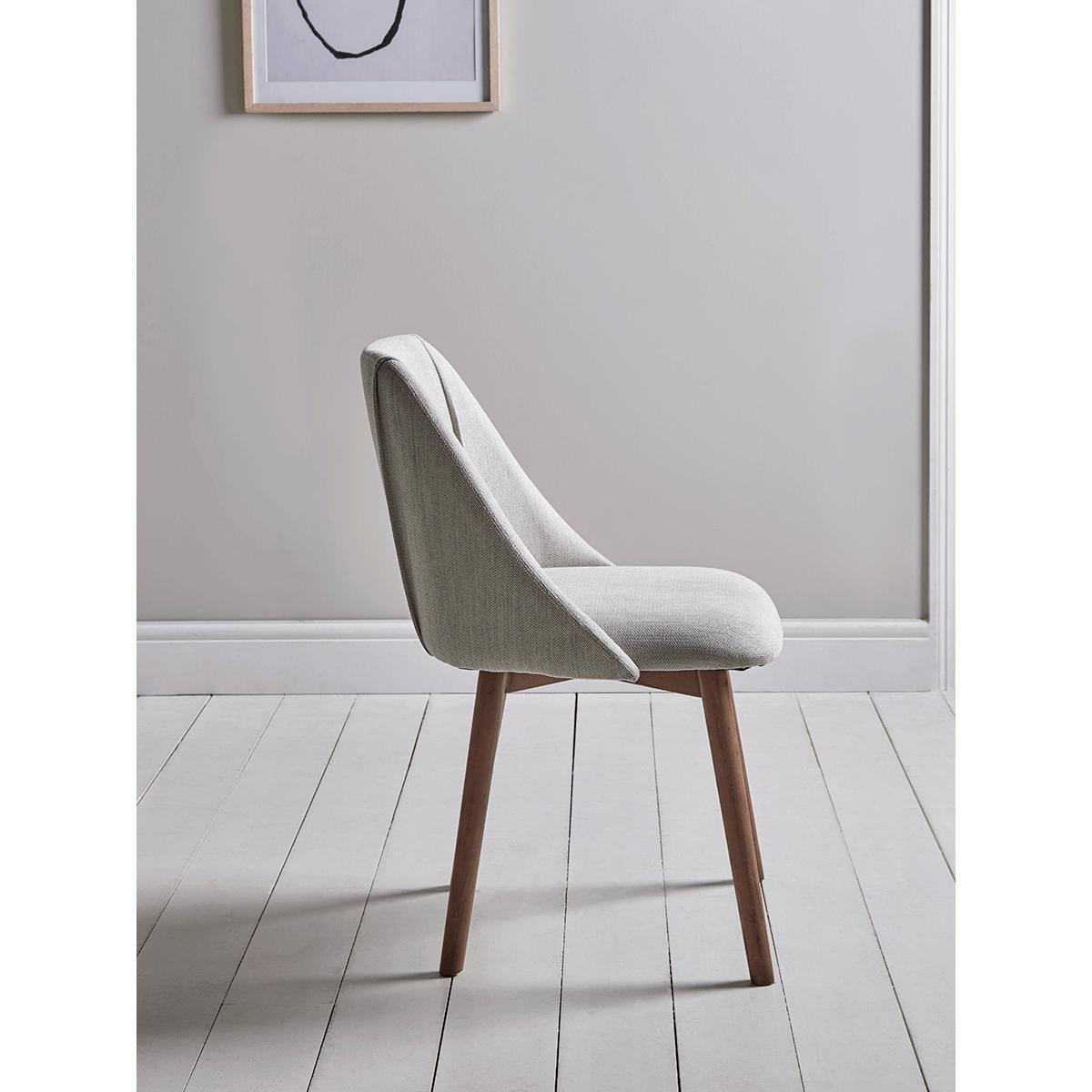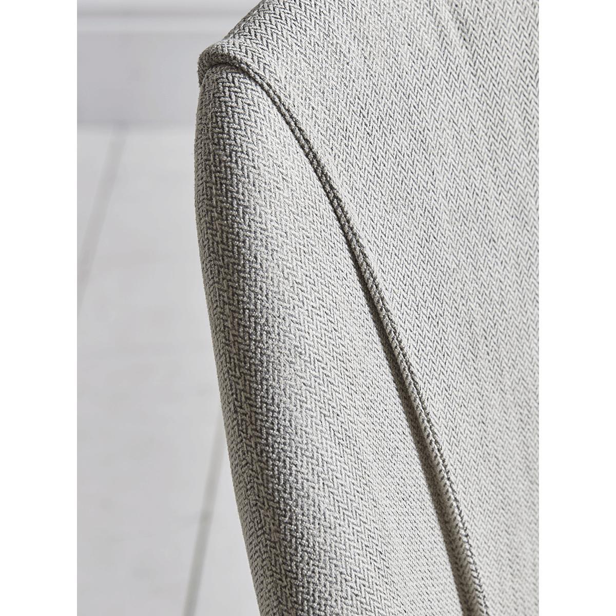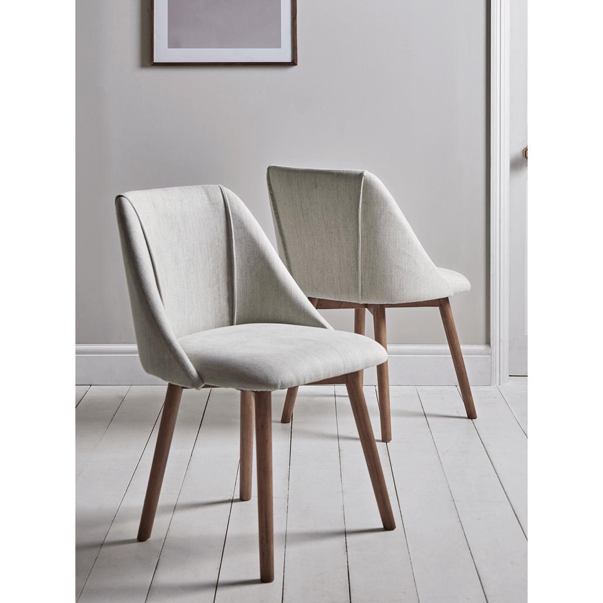 The design of our upholstered dining chairs nods to Danish mid-century principles and their simplicity and neutral-tone deliver an understated style to any dining table. Each chair in our set of two is upholstered in a soft grey herringbone with a slender ash wood frame and a comfortable deep padded seat. Also available in. Grey.