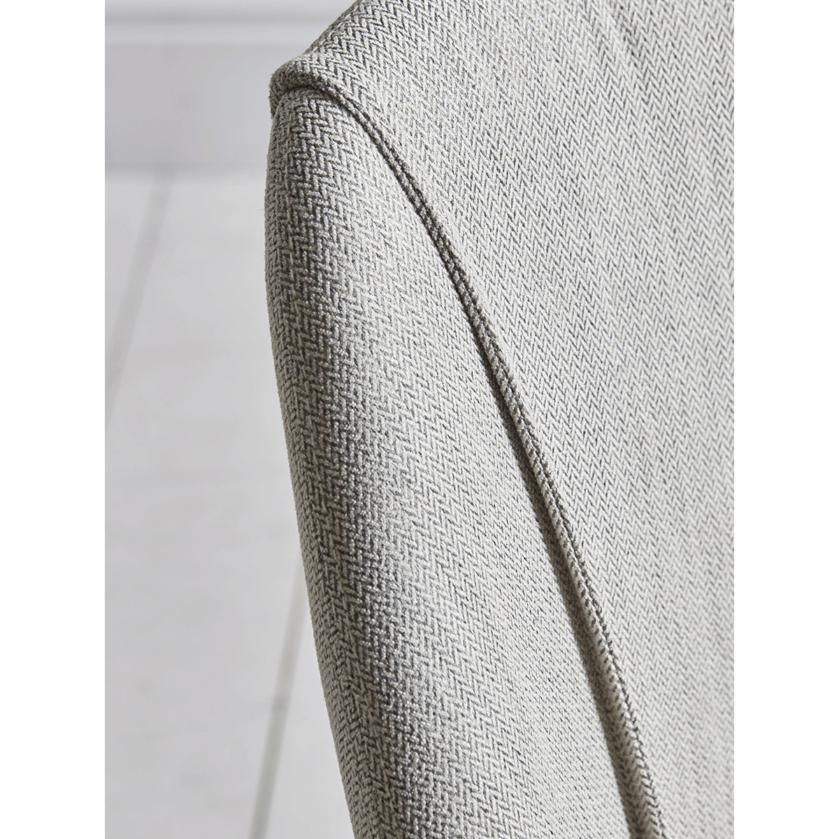 The shape of our set of two upholstered dining chairs nods to Danish mid-century principles and their simplicity brings a timeless elegance. With this is mind, our neutral toned chair will bring understated style to any dining table, both the traditional or the more contemporary. Each chair is upholstered in stone toned herringbone with a slender ash wood frame and a comfortable deep padded seat.