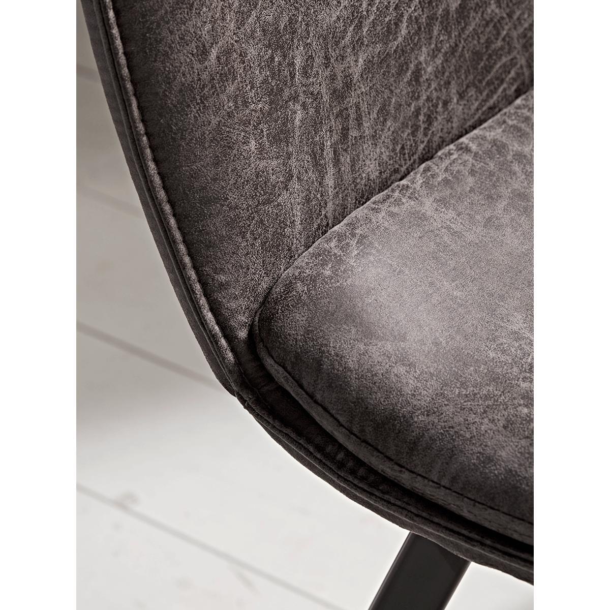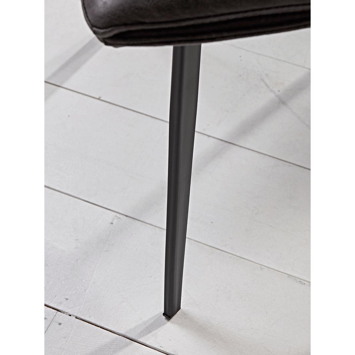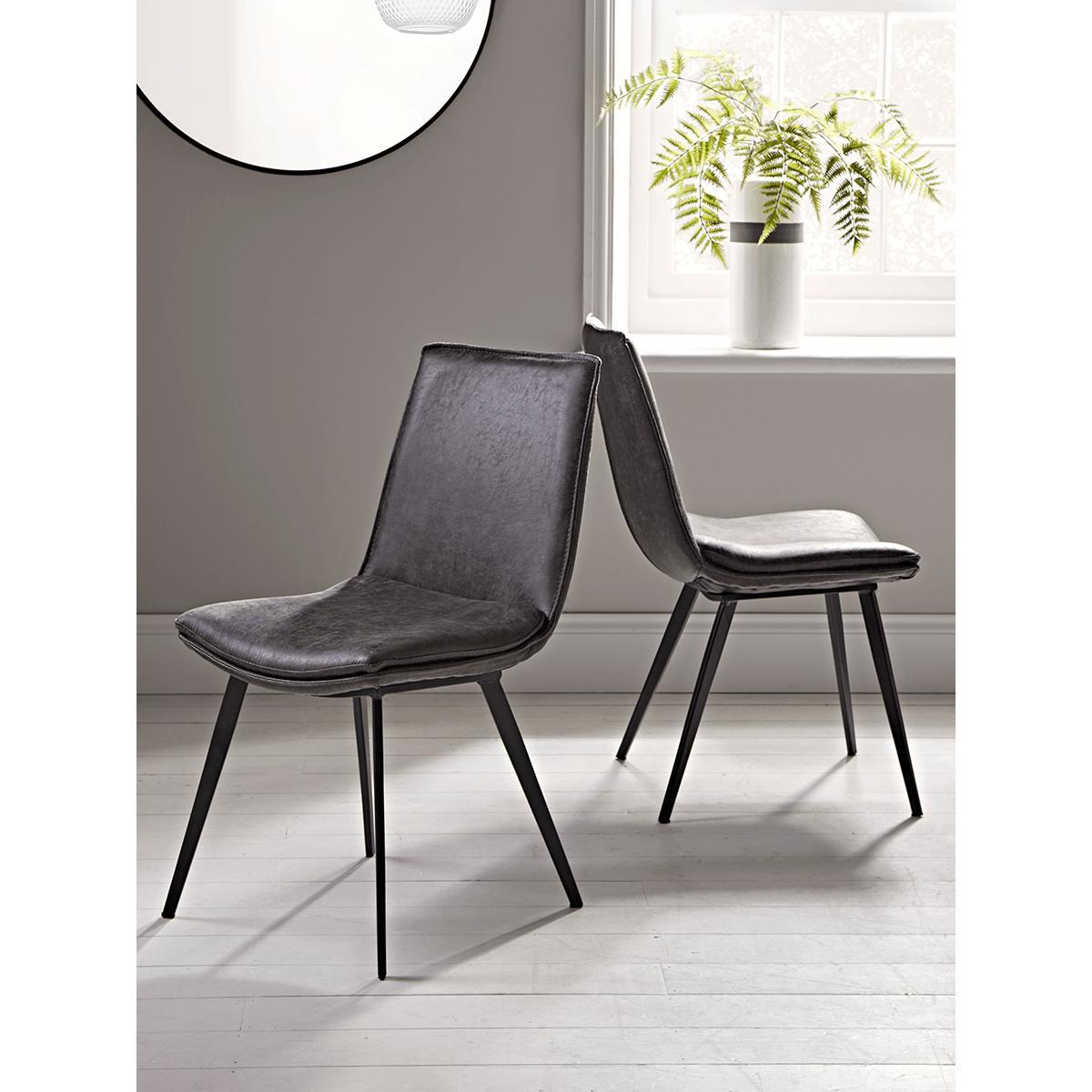 With a sleek, simple silhouette and a comfortable seat upholstered in faux leather, our set of two factory style dining chairs in carbon grey-black will make an edgy addition to your kitchen décor. Place at your dining table to bring a touch of Brooklyn style to your space. Also available in. Tan.