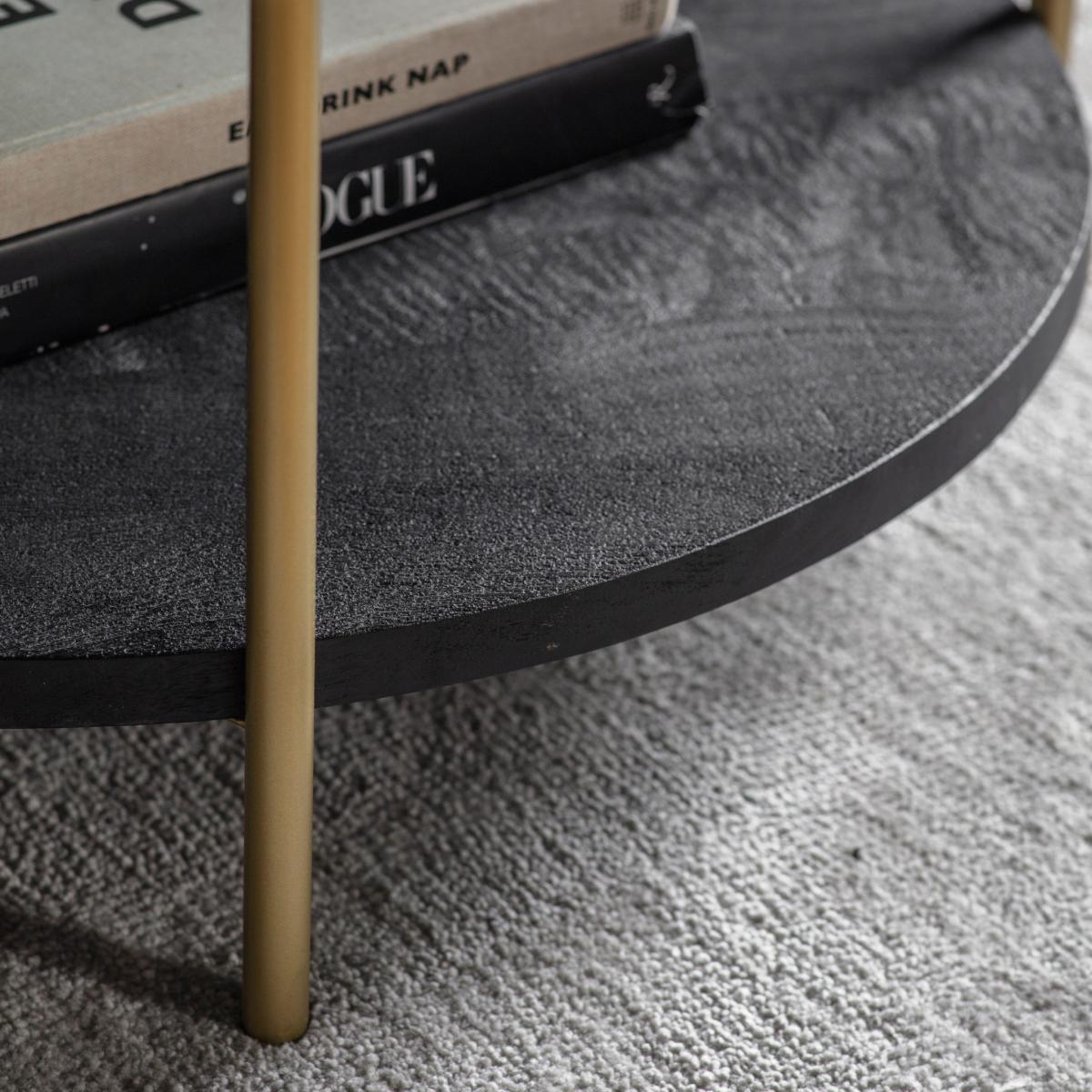 Add a touch of chic contemporary style to a room with the Herne Coffee table. The metal legs have a glamourous gold finish which looks stunning with the black glass top and black wooden shelf. A matching side table is available, and the two look fantastic used together.